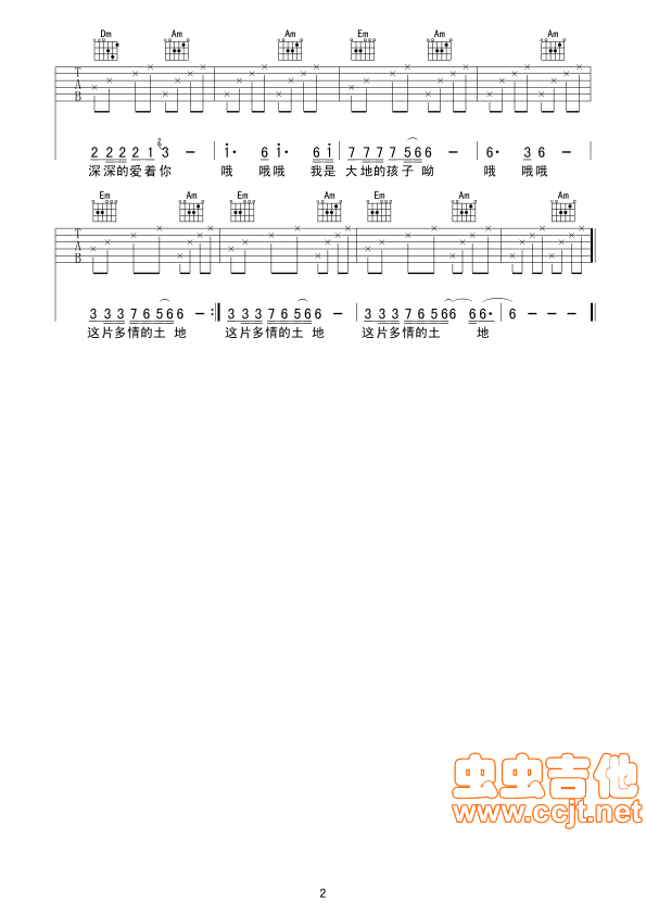 曲谱介绍: 《大地的孩子(》吉他弹唱谱,共有2张高清图谱,免翻页排版设计。