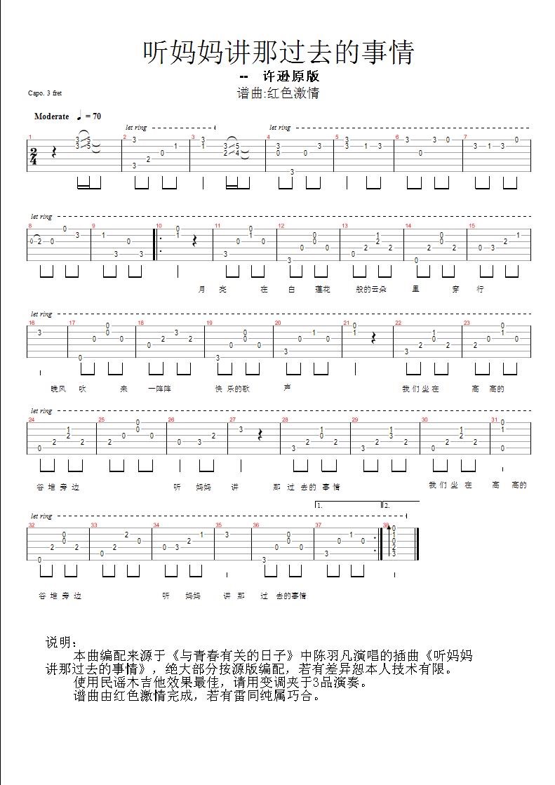 当前位置:琴谱网>吉他弹唱>听妈妈讲那过去的事情