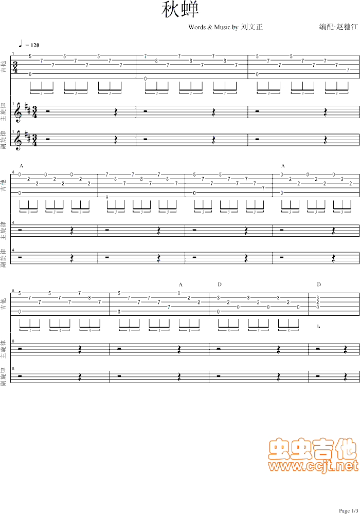 秋蝉吉他谱 - 吉他弹唱谱