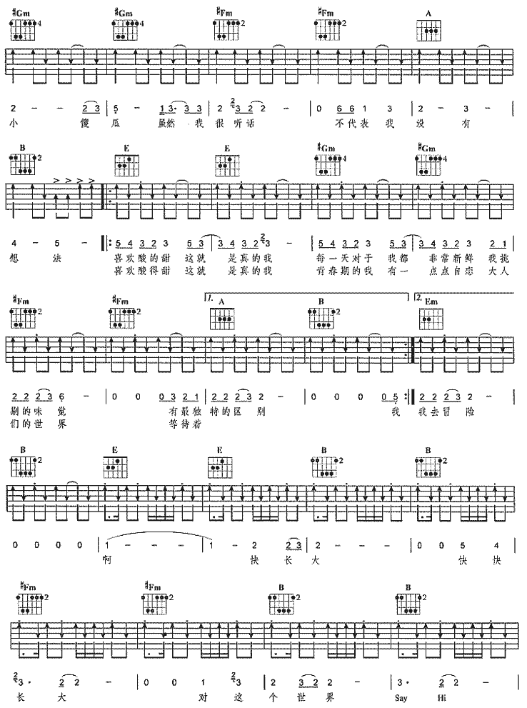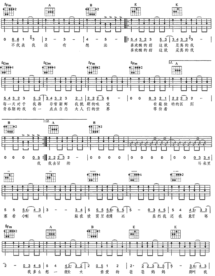 酸酸甜甜就是我(木吉他)吉他谱 - 吉他弹唱谱