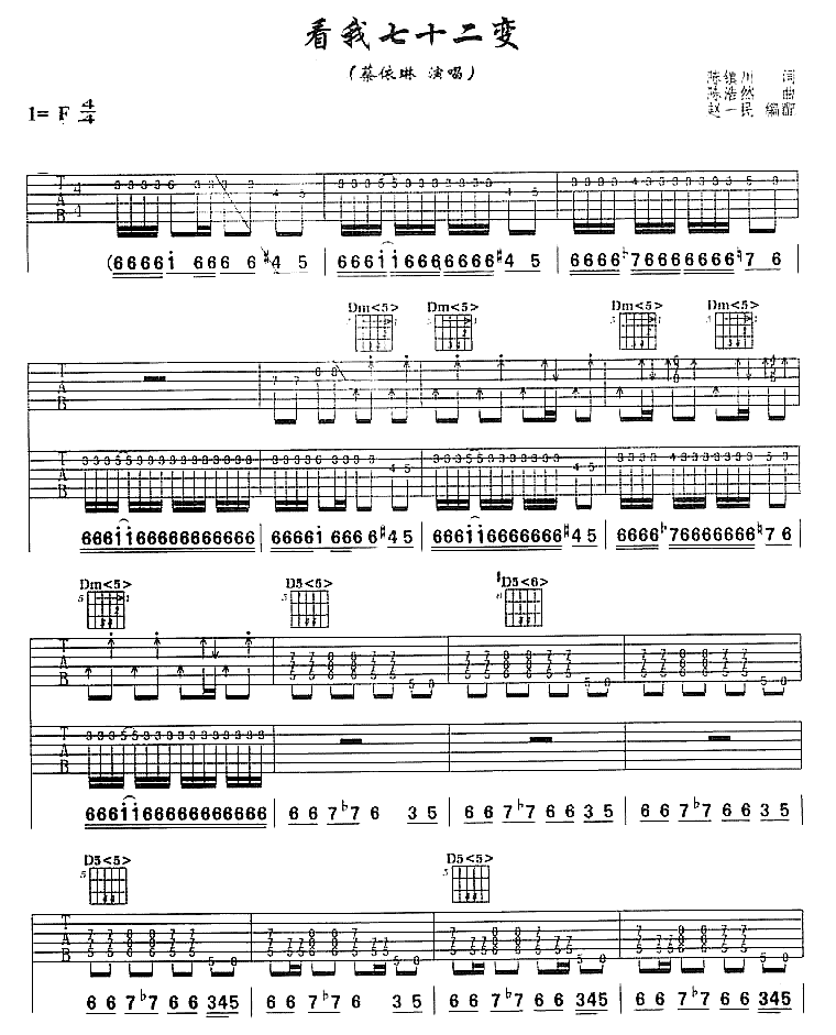 当前位置:琴谱网>吉他弹唱>看我七十二变