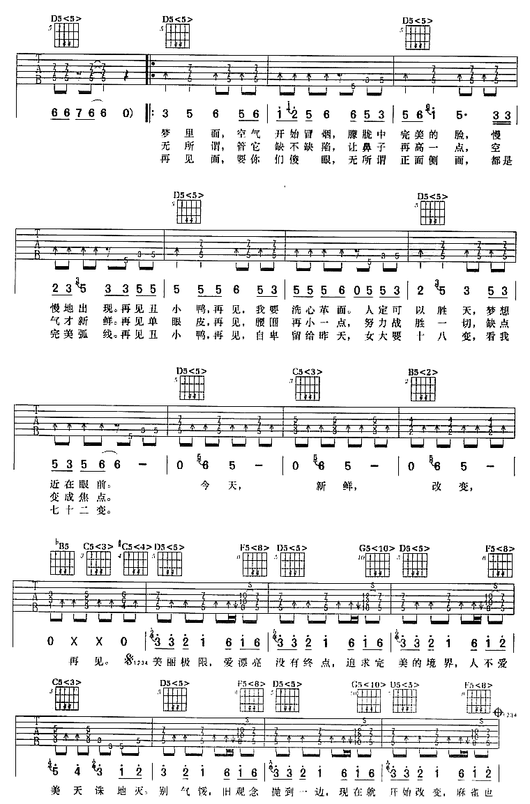 曲谱介绍: 《看我七十二变》吉他弹唱谱,共有4张高清图谱。