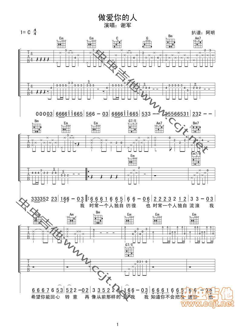 曲谱介绍: 《做爱你的人》吉他弹唱谱,共有4张高清图谱。