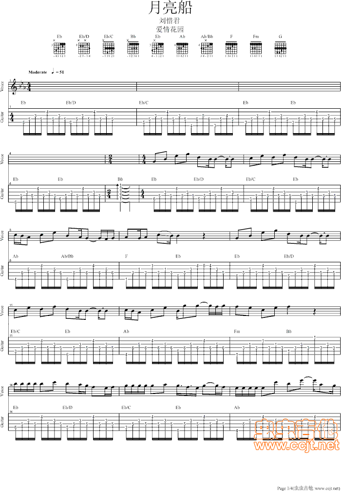 当前位置:琴谱网>吉他弹唱>月亮船
