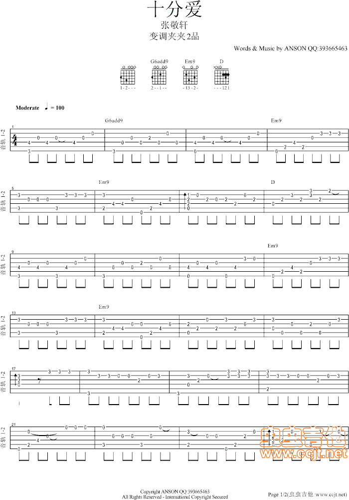 当前位置:琴谱网>吉他独奏>【十分爱】张敬轩