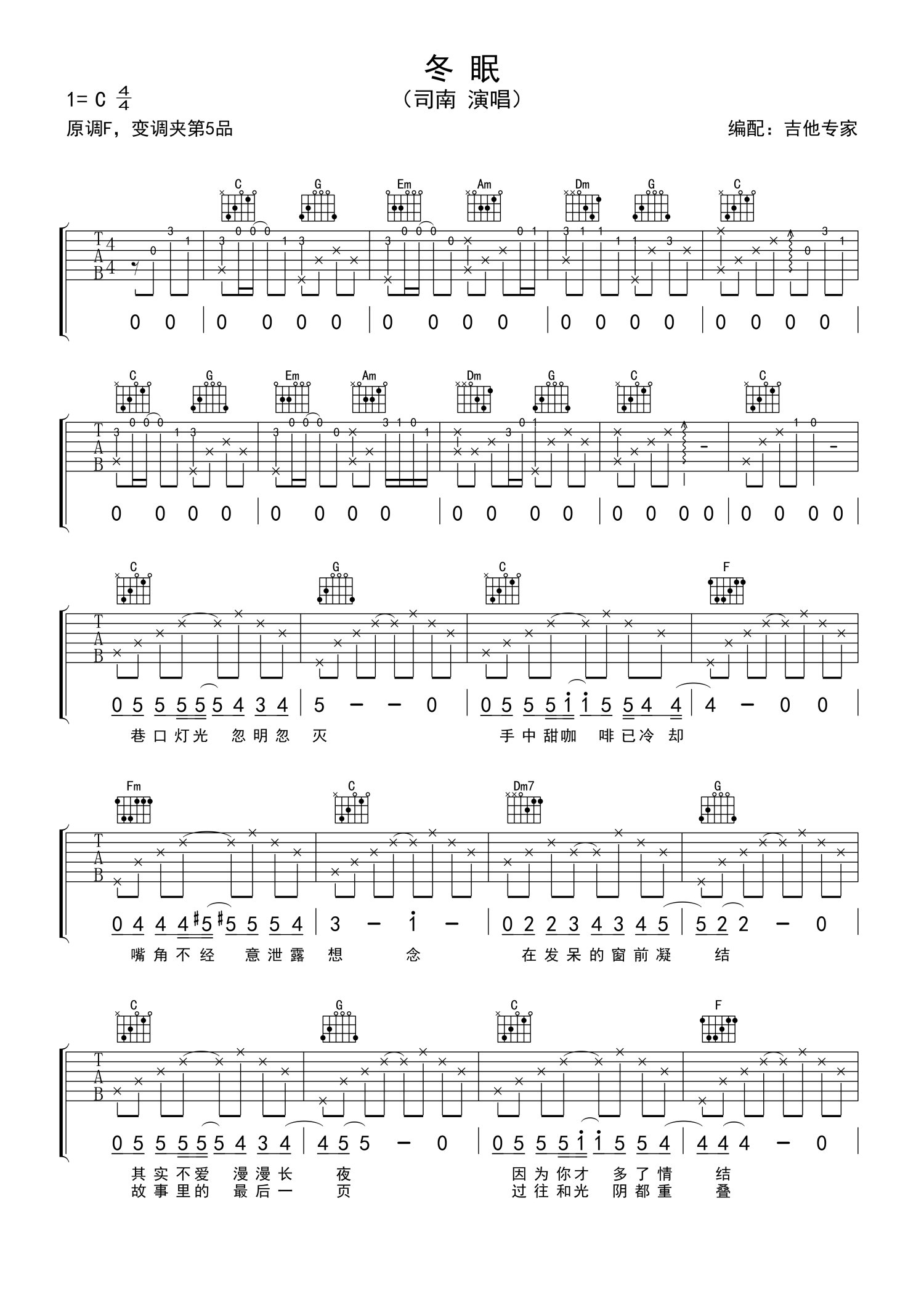 曲谱介绍: 司南《冬眠》吉他谱_C调吉他弹唱谱