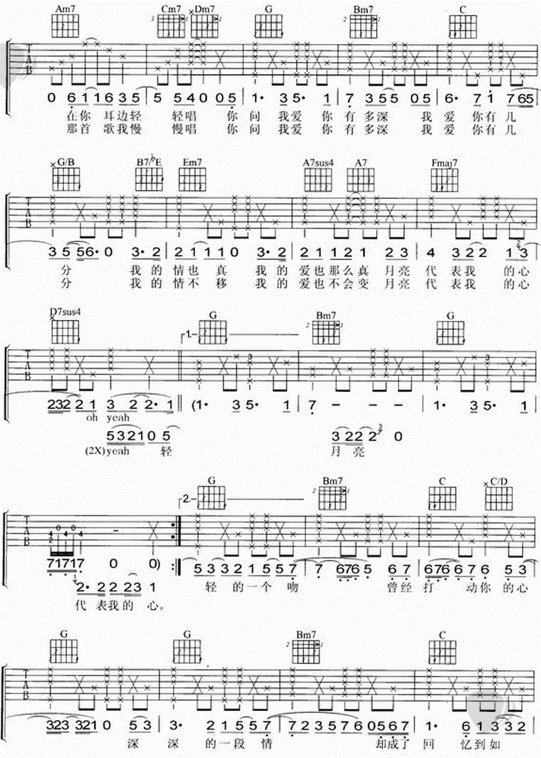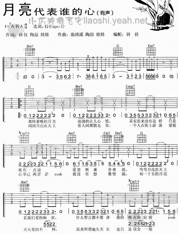 当前位置:琴谱网>吉他弹唱>月亮代表谁的心