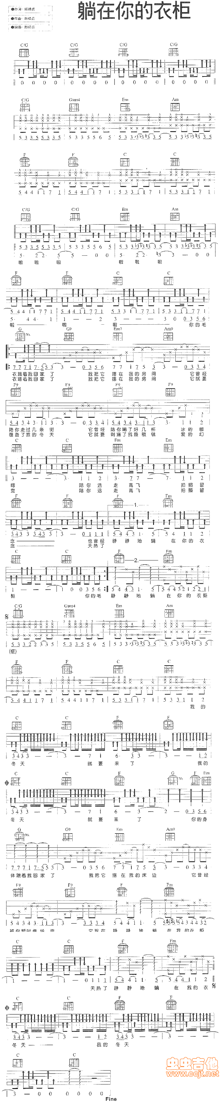 当前位置:琴谱网>吉他弹唱>躺在你的衣柜