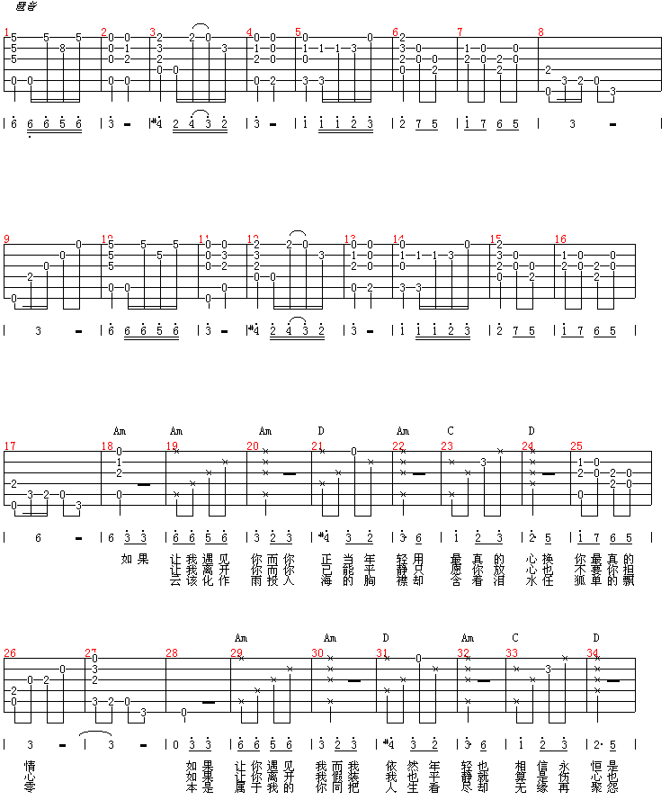 曲谱介绍: 《怨苍天变了心》吉他弹唱谱,共有2张高清图谱,免翻页排版设计。