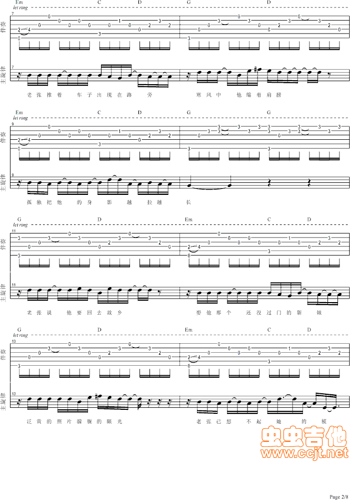 任贤齐【老张的歌】伴奏吉他谱 - 吉他弹唱谱