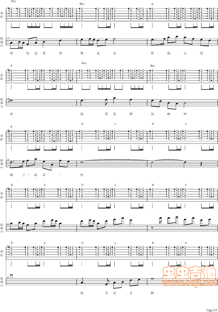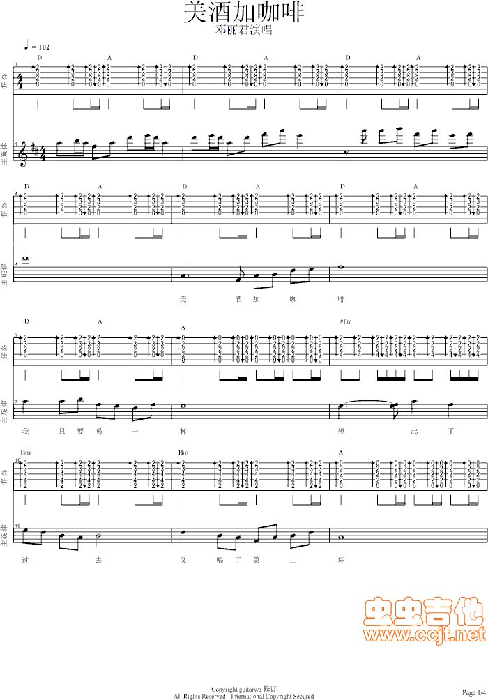 当前位置:琴谱网>吉他弹唱>美酒加咖啡