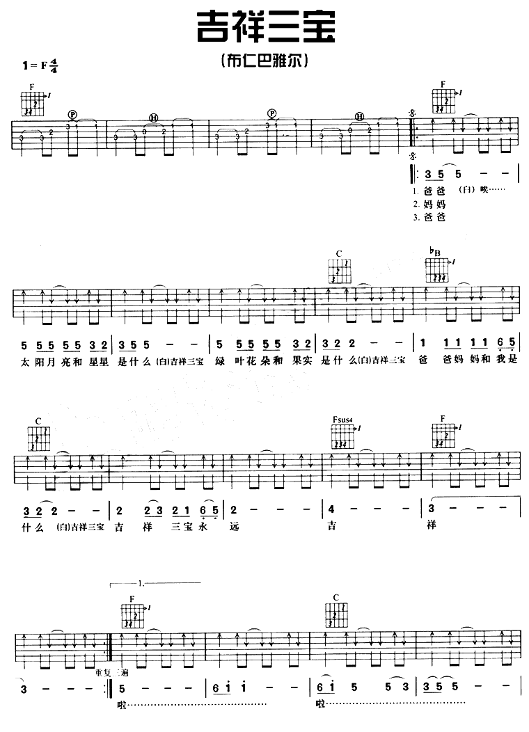 当前位置:琴谱网>吉他弹唱>吉祥三宝