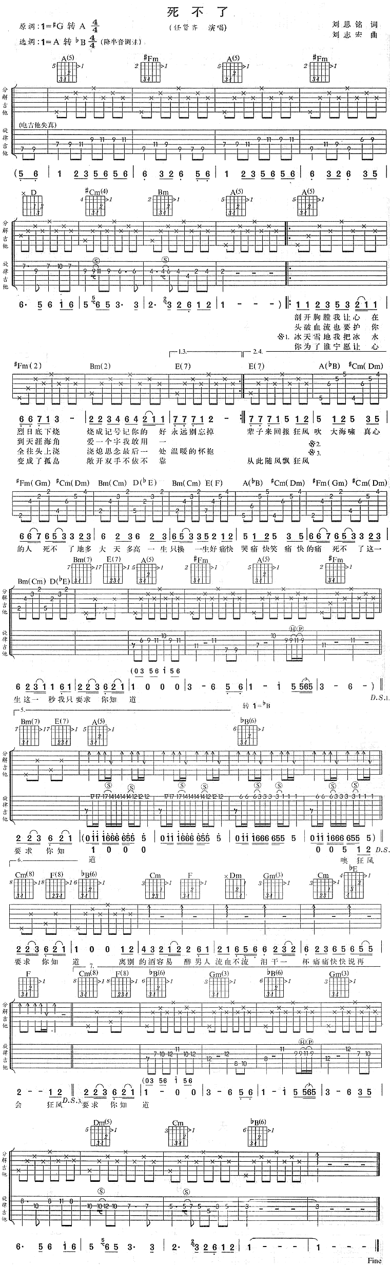 <死不了>原版双吉他吉他谱 - 吉他弹唱谱 - 原版