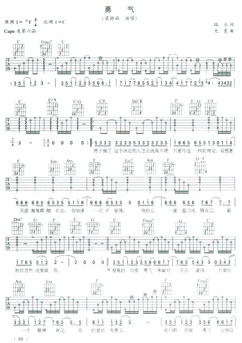 勇气吉他谱 - 吉他弹唱谱