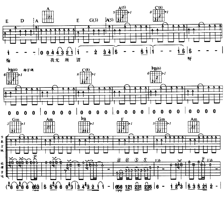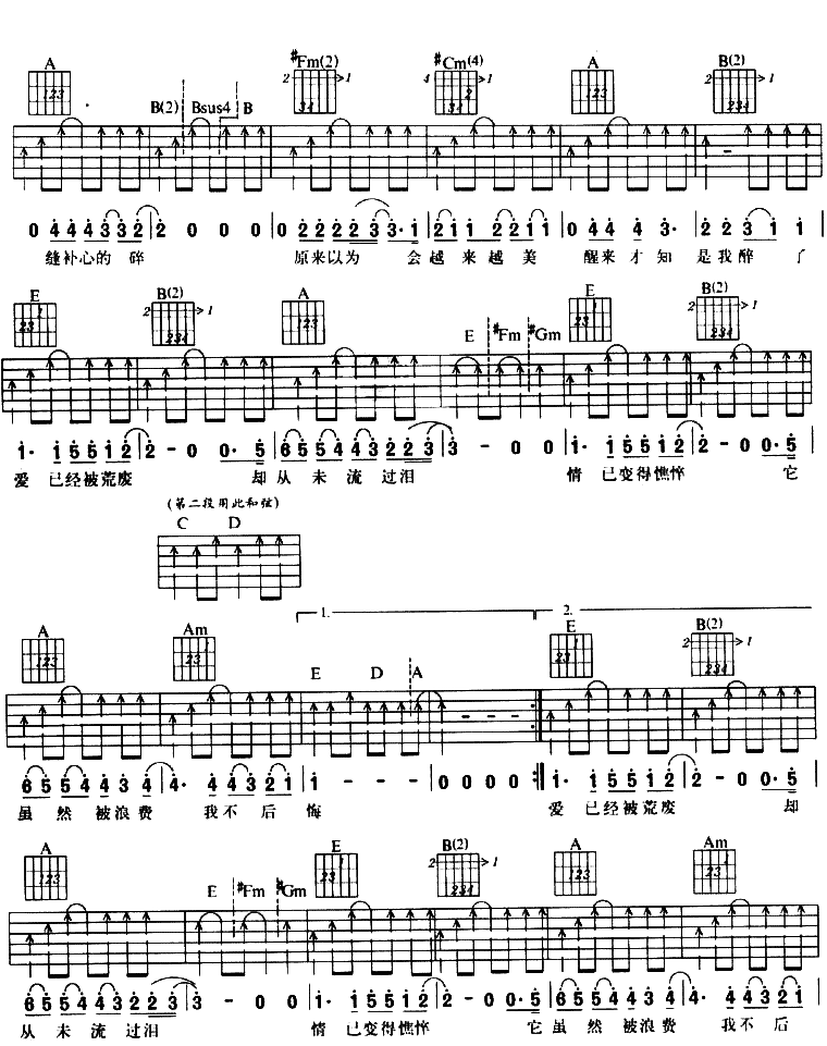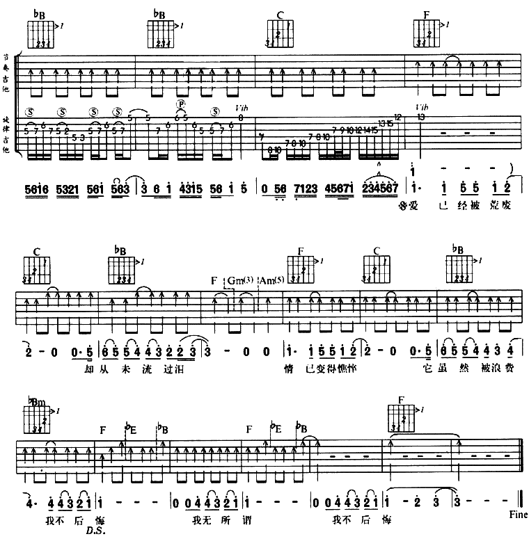 爱不后悔吉他谱 - 吉他弹唱谱