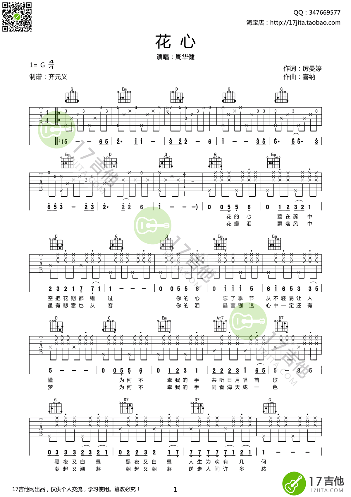 花心吉他谱 - 周华健 - G调吉他弹唱谱