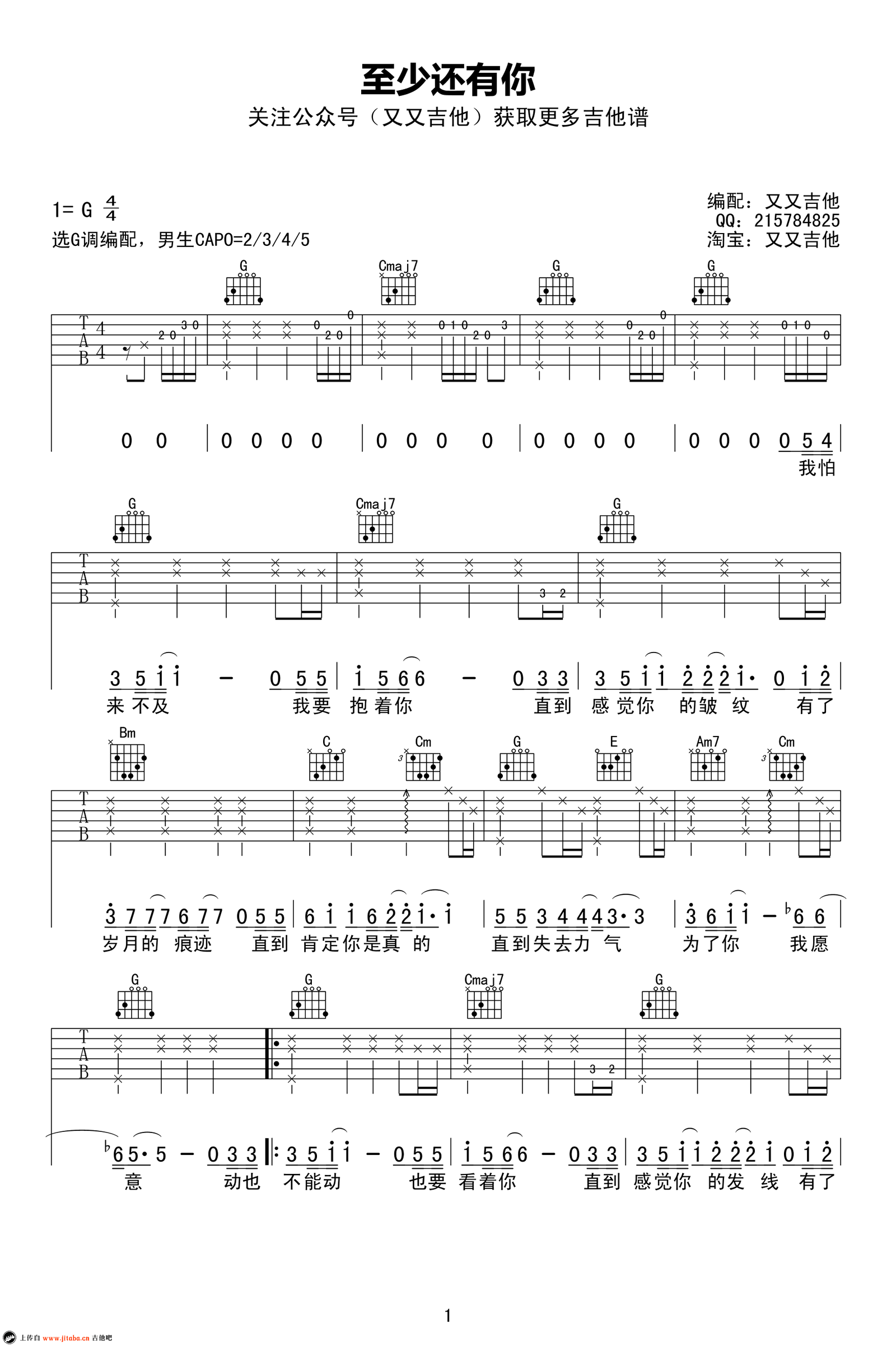 当前位置:琴谱网>吉他弹唱>至少还有你
