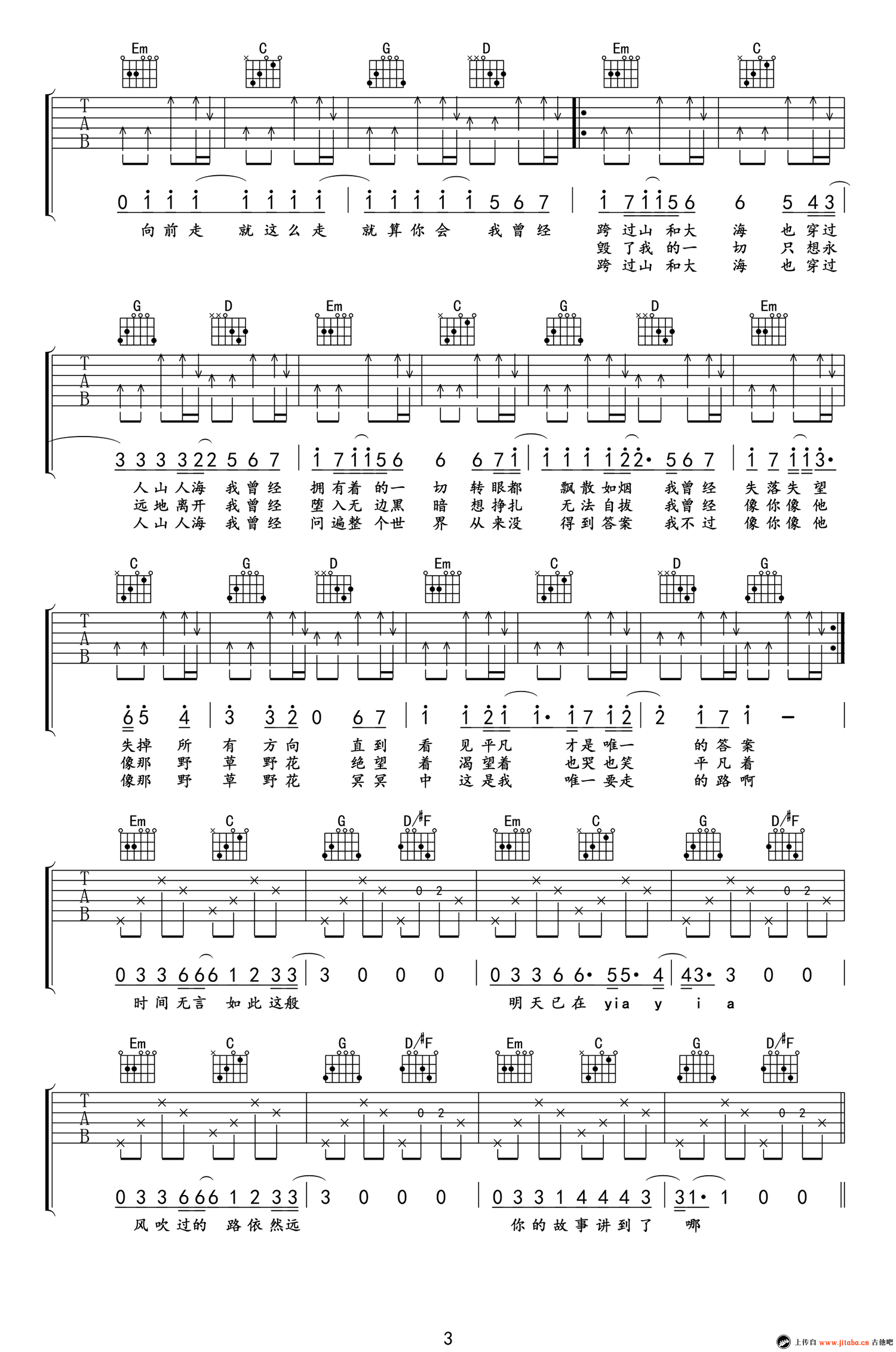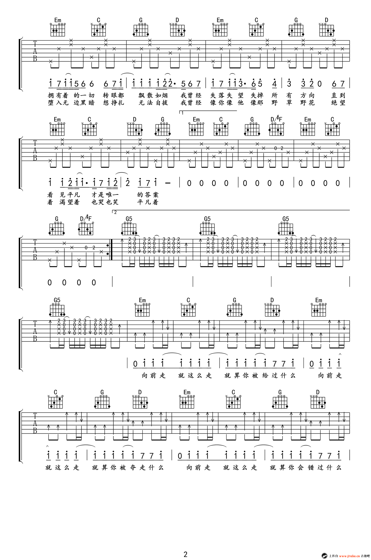 平凡之路吉他谱 - 朴树 - 吉他弹唱谱