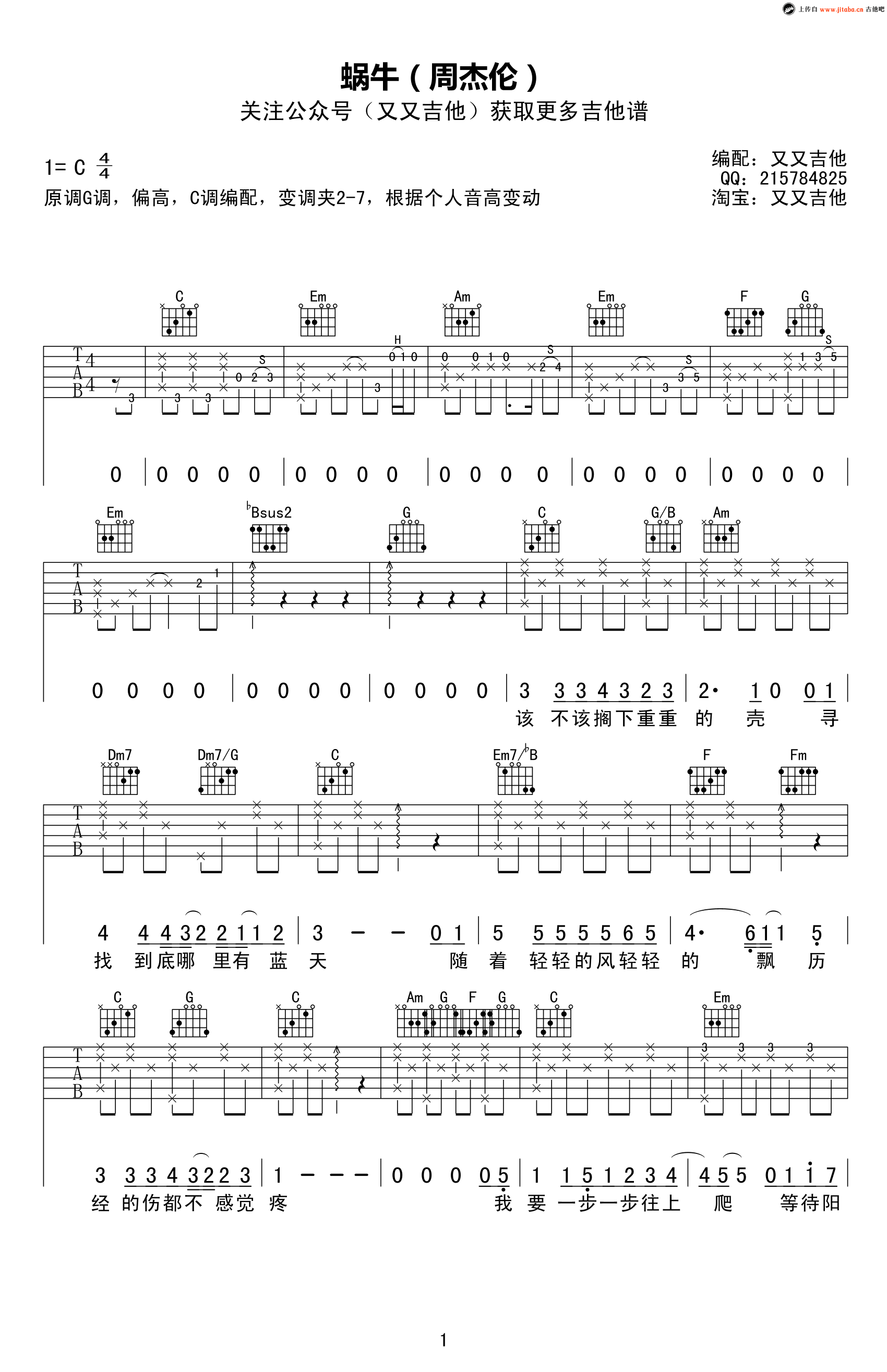 蜗牛吉他谱 - 周杰伦 - C调吉他弹唱谱