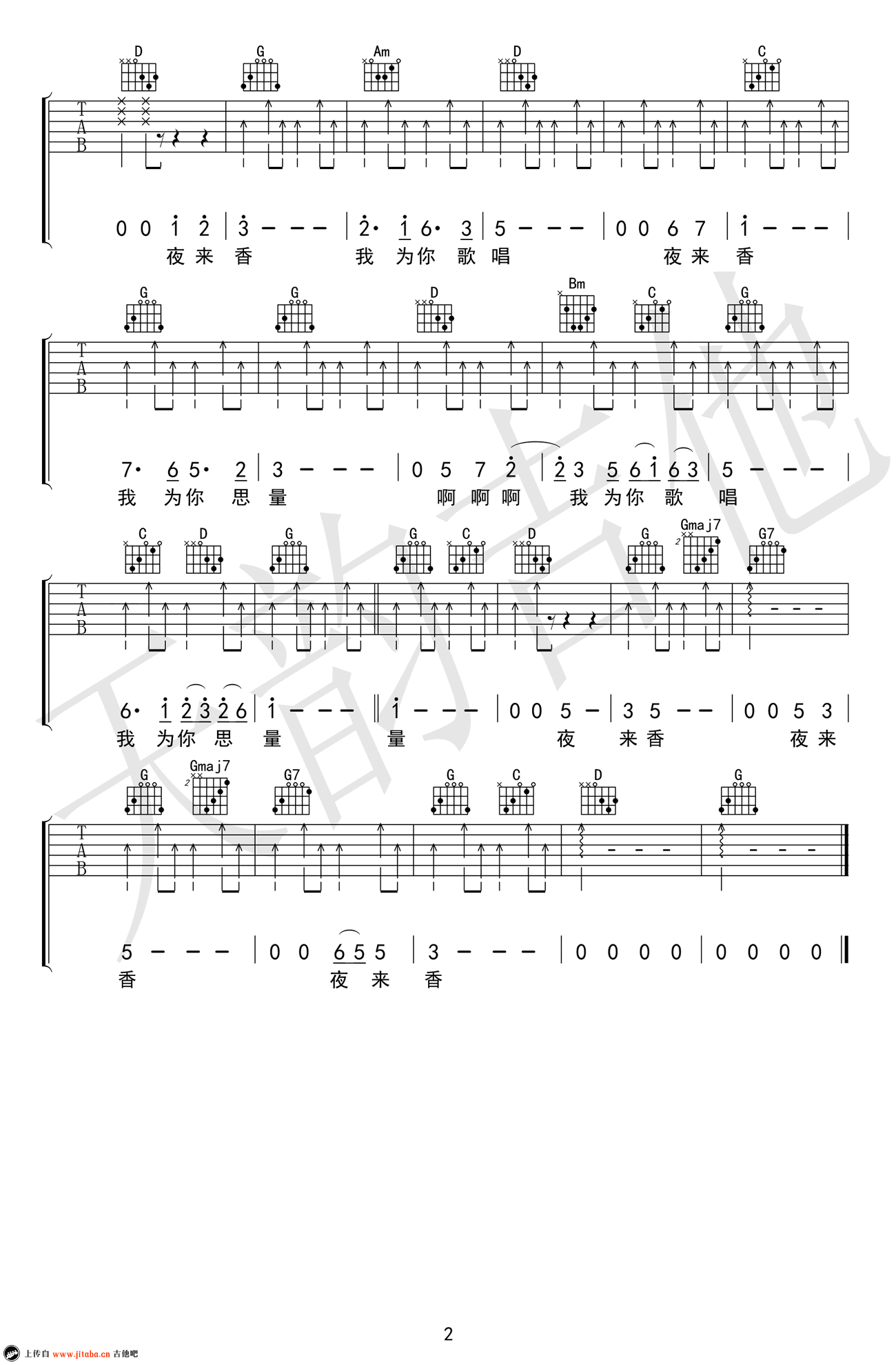 夜来香吉他谱 - 邓丽君 - G调吉他弹唱谱