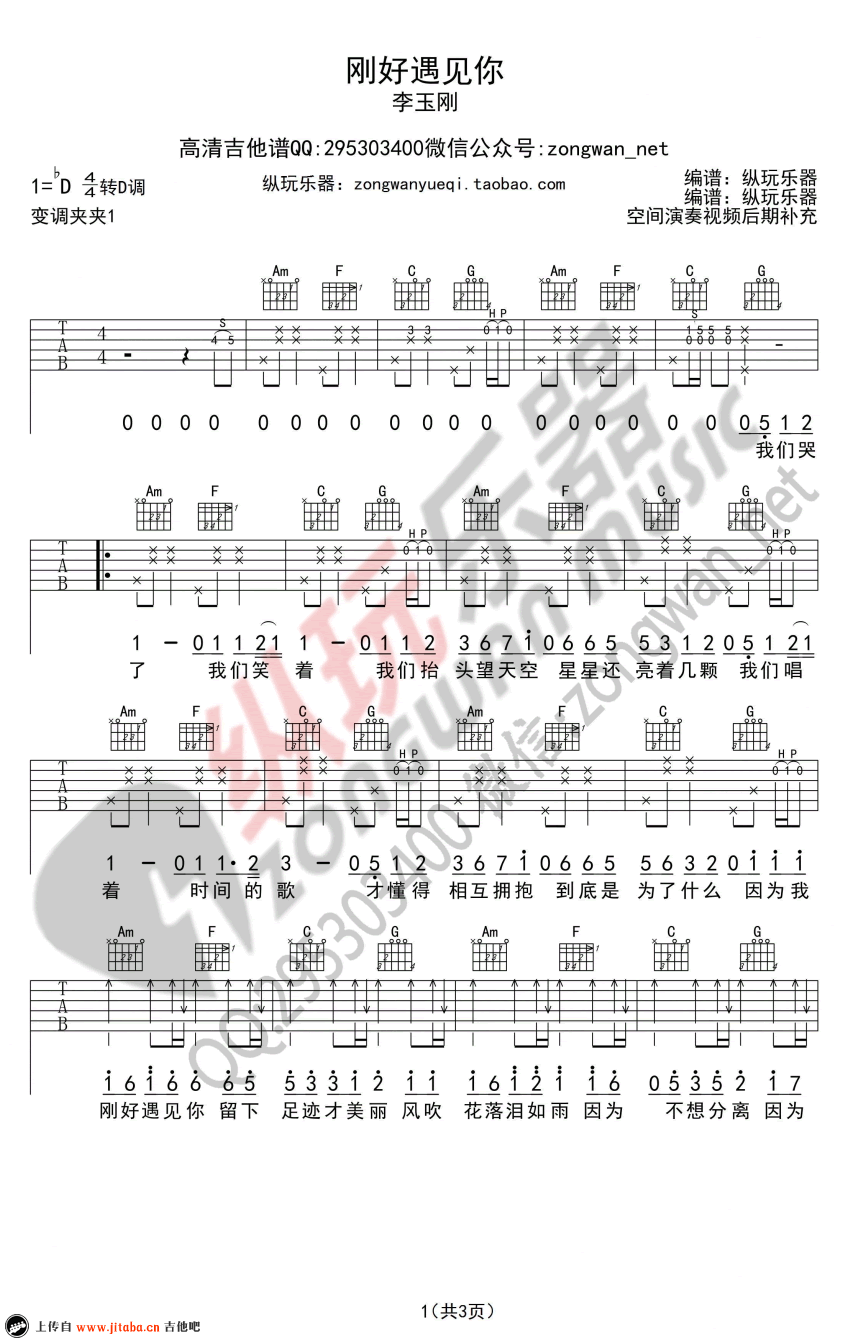 刚好遇见你吉他谱 - 李玉刚 - 吉他弹唱谱