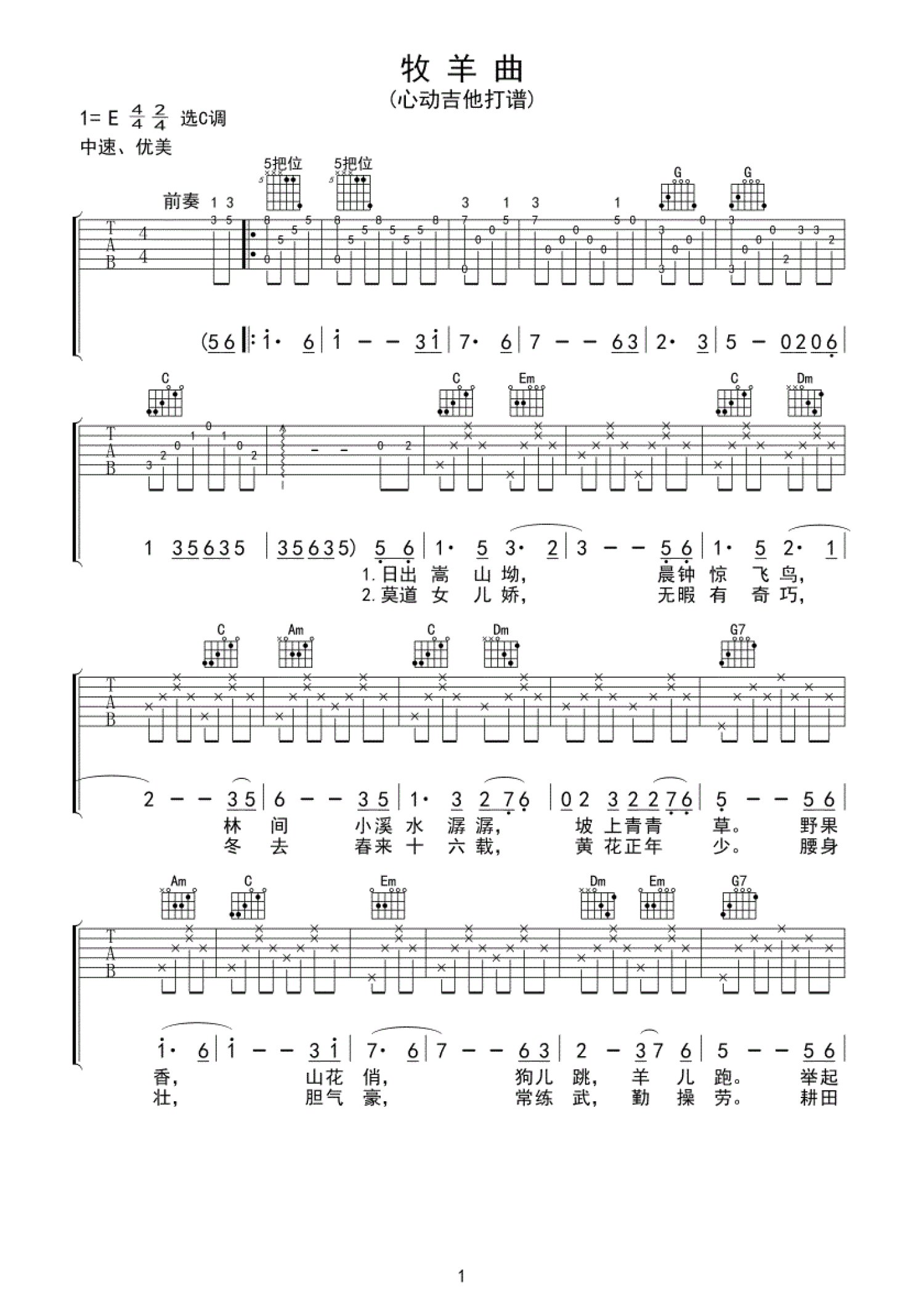 吉他弹唱C调来源:心动吉他12868 浏览2020-02-16 11:22发布图谱共2页