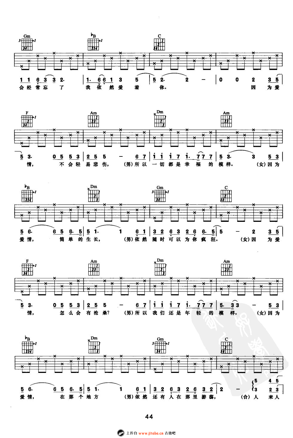 当前位置:琴谱网>吉他弹唱>因为爱情
