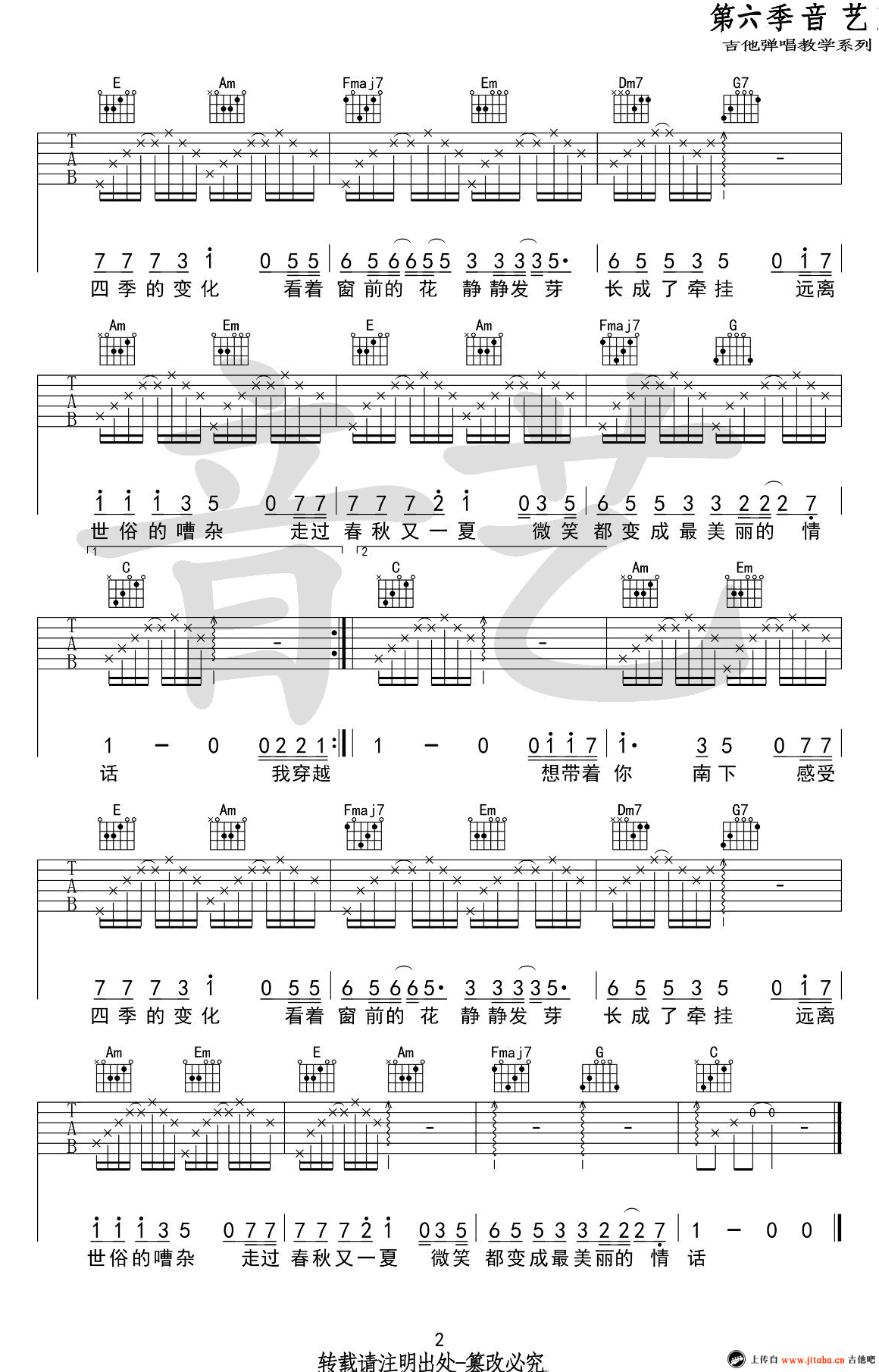 当前位置:琴谱网>吉他弹唱>南下