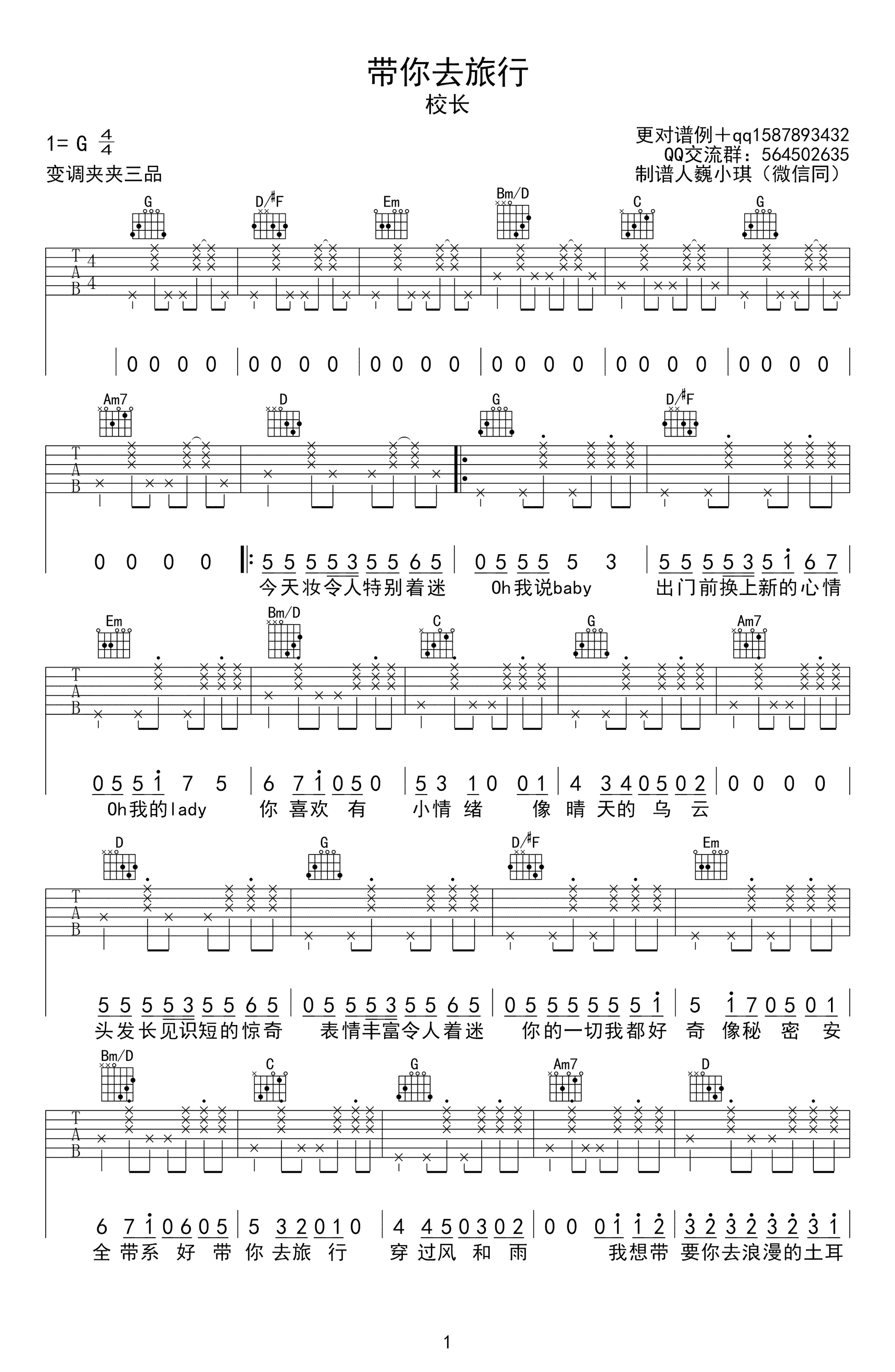 带你去旅行吉他谱 - 校长 - G调吉他弹唱谱