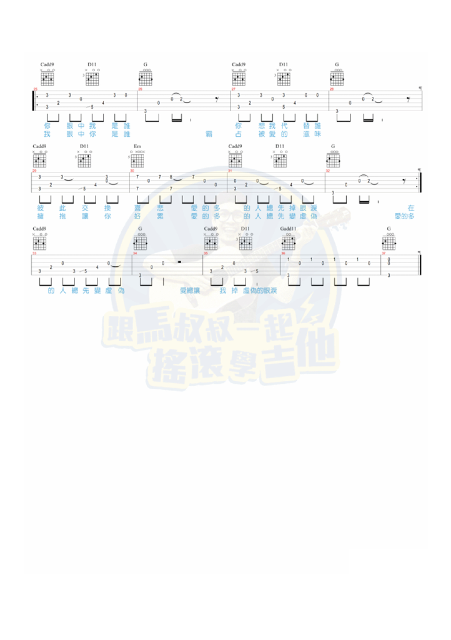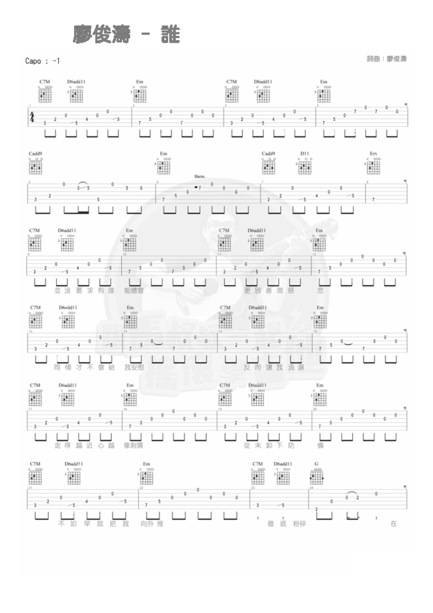 谁吉他谱 - 廖俊涛 - 吉他弹唱谱