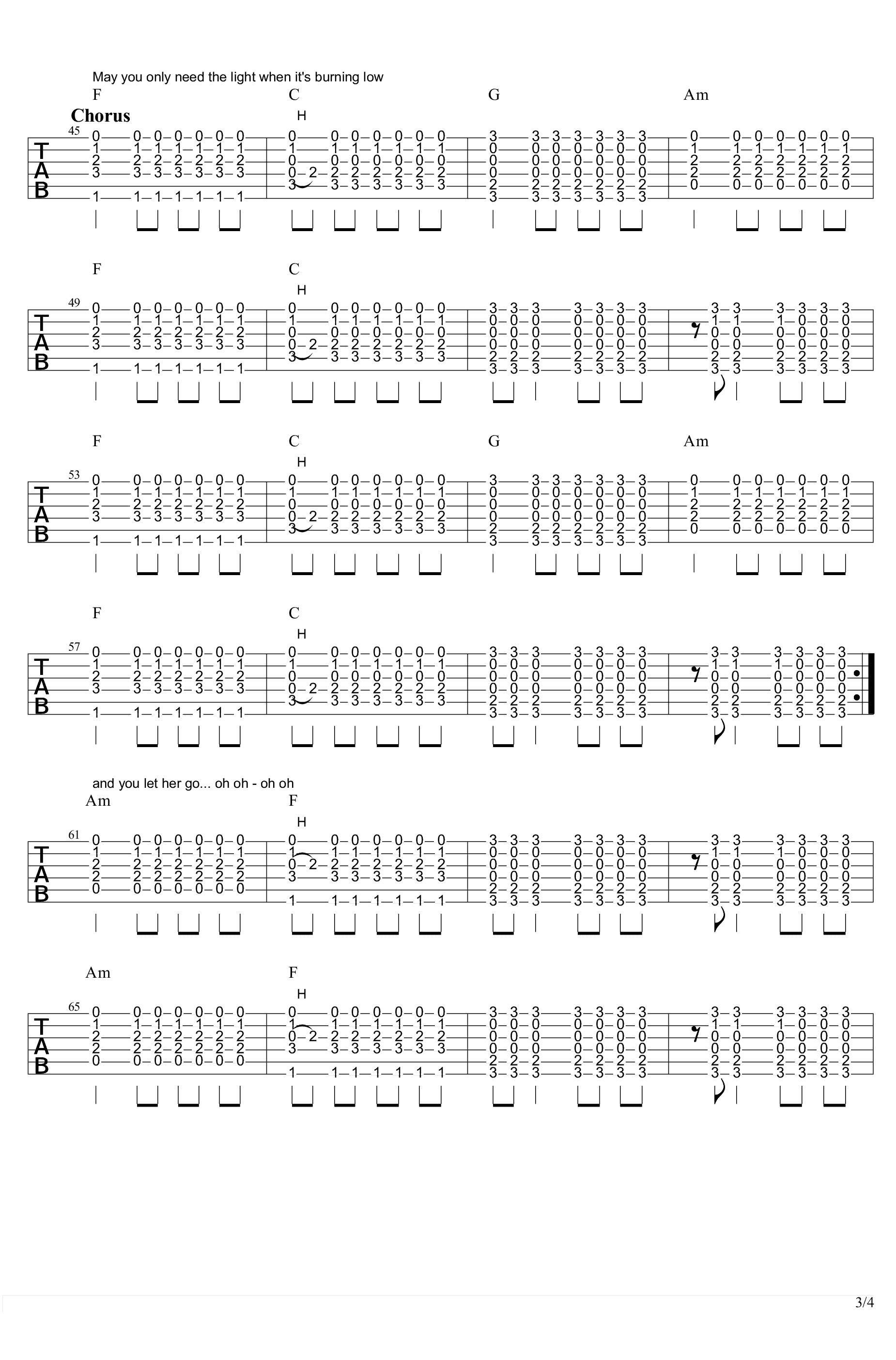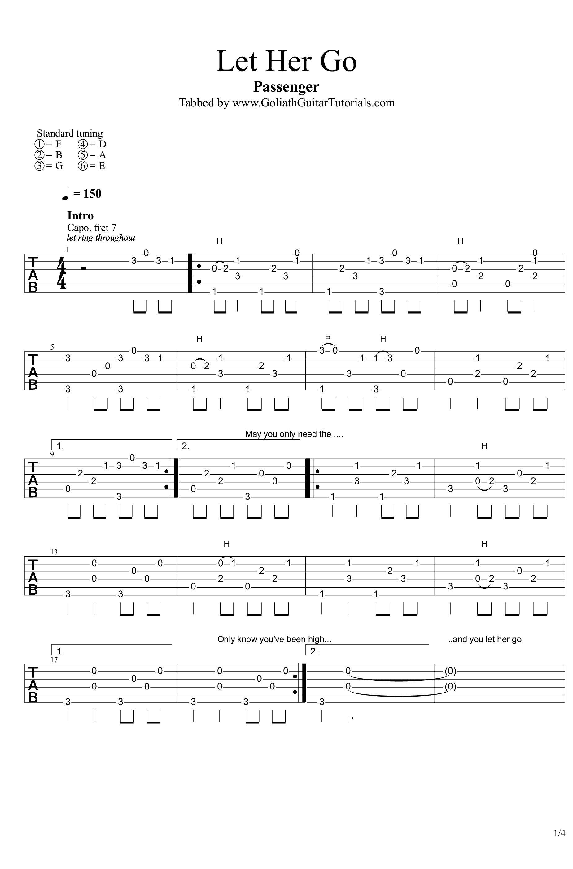 曲谱介绍: Passenger《let her go》吉他谱,吉他弹唱吟游诗人passenger经典歌曲,Let her go六线谱,高清图片谱,G大调主旋律,变调夹夹七品。迷人的旋律干净的吉他音色,让人沉醉其中。 一种民谣式的曲调,诉说着一些过往的故事:有些东西不属于你的时候,你才发现她其实已经是你的世界中的组成部分,你需要记住的是:以后请珍惜那些“得来不易”的人和事。这首歌就送给91吉他谱的琴友们。