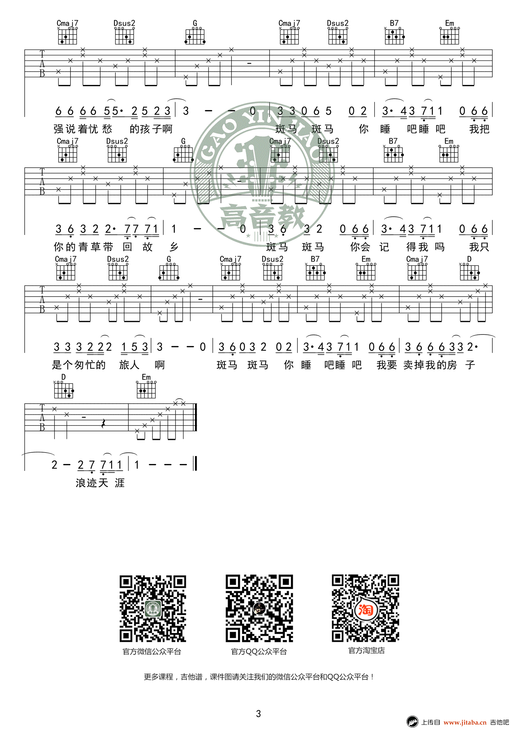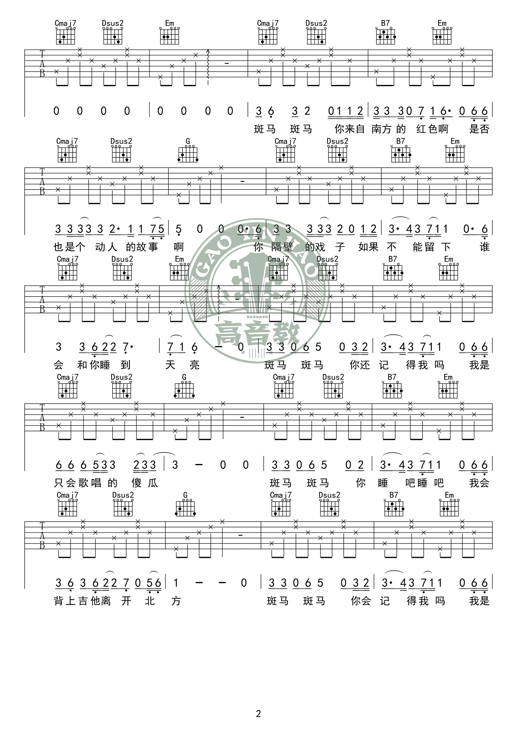 当前位置:琴谱网>吉他弹唱>斑马斑马