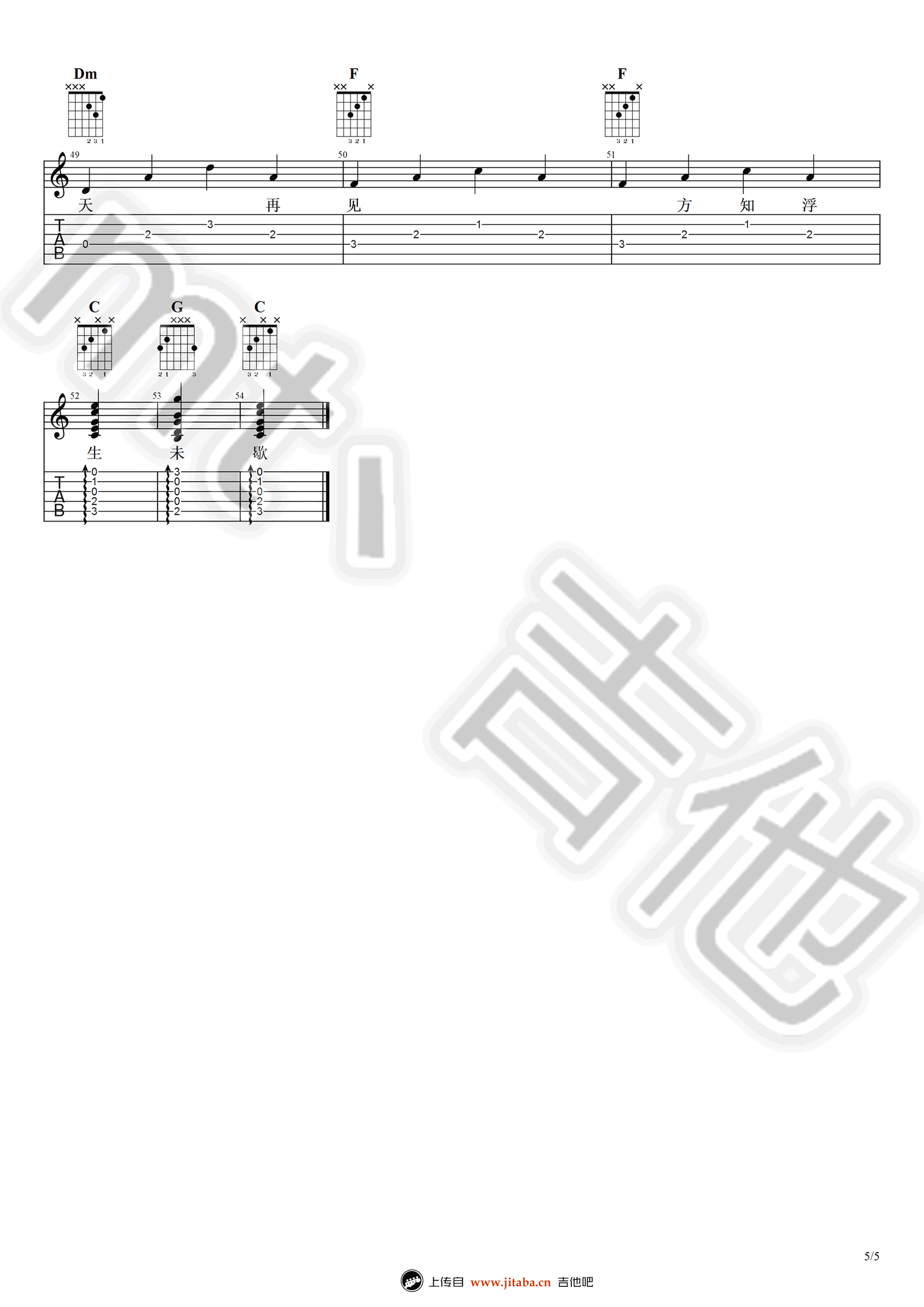 曲谱介绍: 浮生未歇吉他谱,音频怪物演唱,一首动听的古风歌曲,浮生未歇六线谱,高清图片谱五张谱例。感谢MT吉他编配,91吉他谱上传。 原曲为中岛美嘉的《桜色舞うころ》,旧曲填新词,翻唱者众多。原唱音频怪物老妖的声音大气、洒脱,若今昔一别,一别永年。苍山负雪,浮生未歇。为纪念《仙剑奇侠传四》中的云天河与柳梦璃所作。