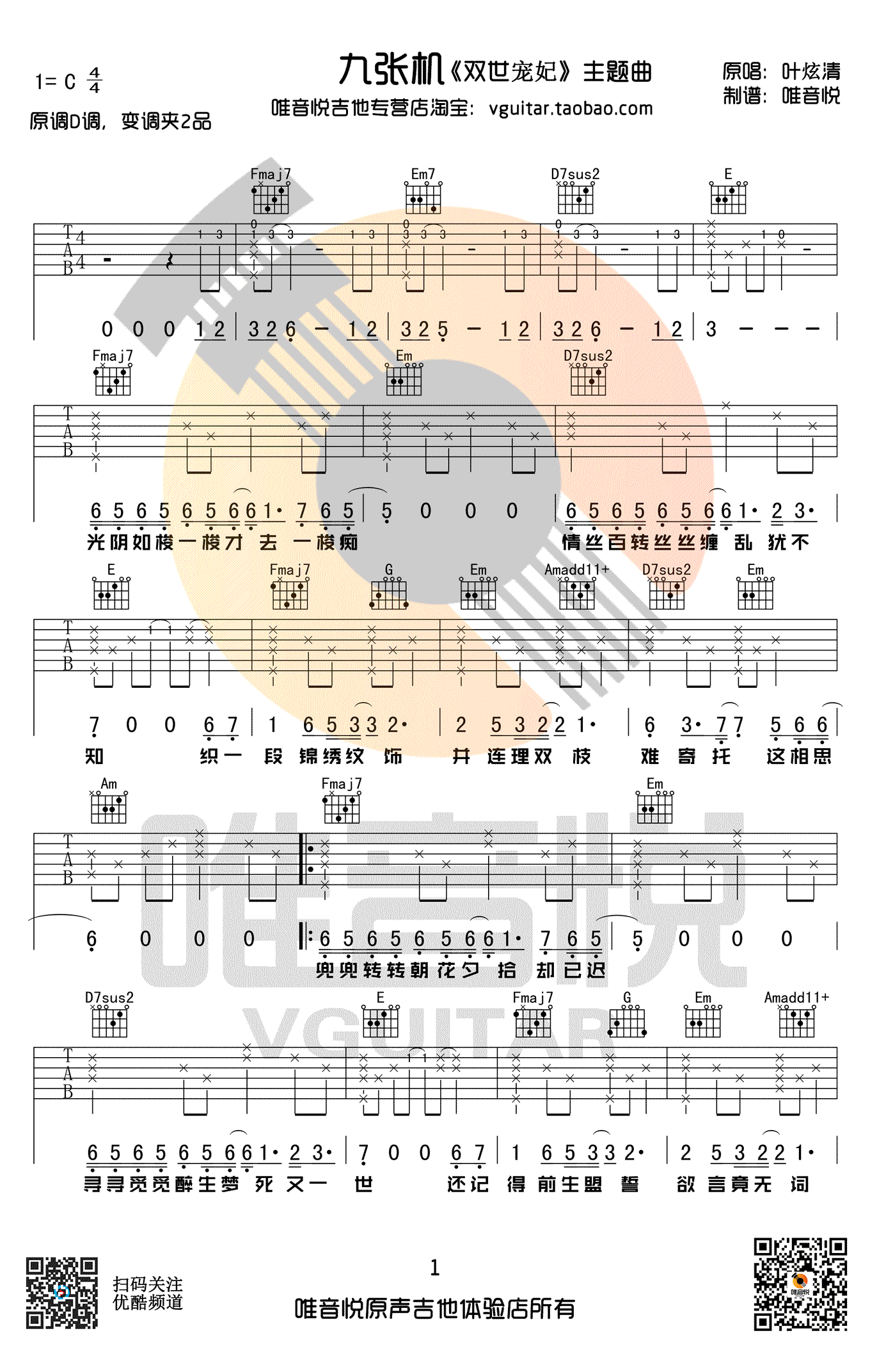 双世宠妃吉他谱 - 叶炫清 - C调吉他弹唱谱