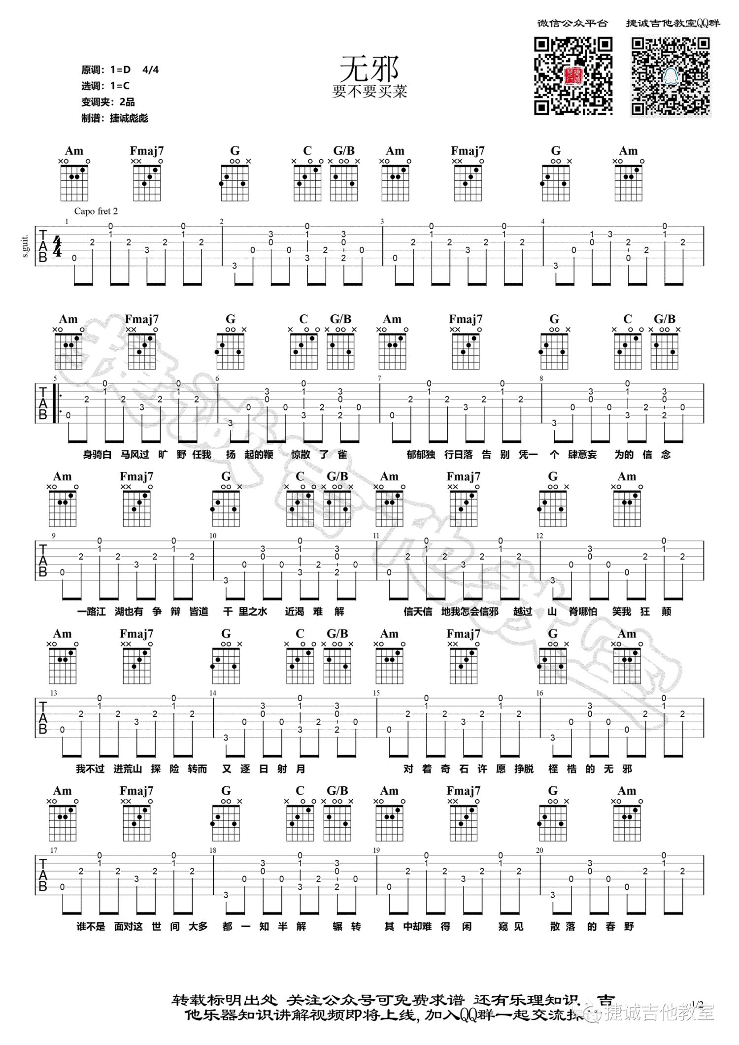 无邪吉他谱 - 要不要买菜 - C调吉他弹唱谱