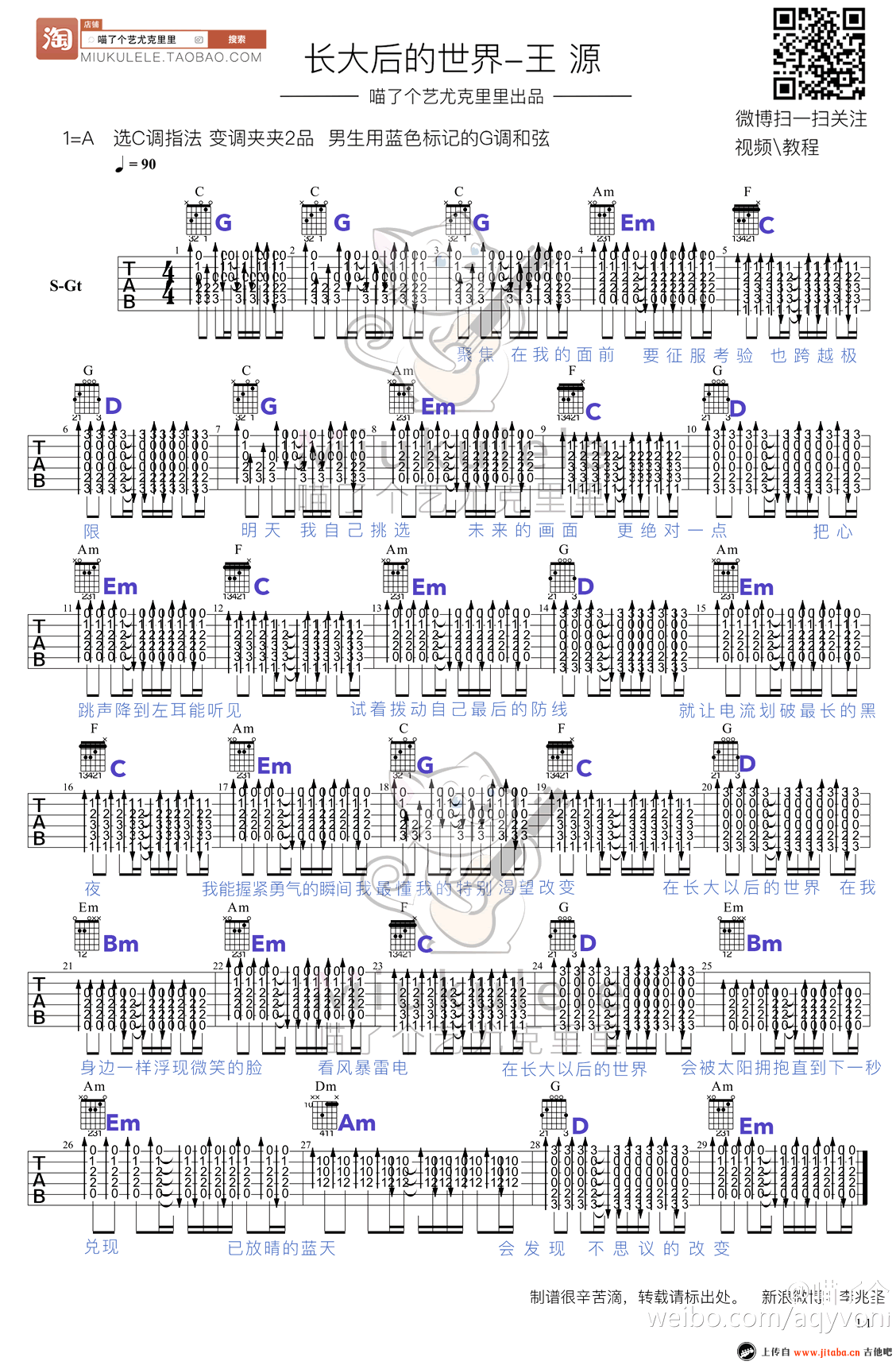 长大以后的世界吉他谱 - 王源 - 吉他弹唱谱