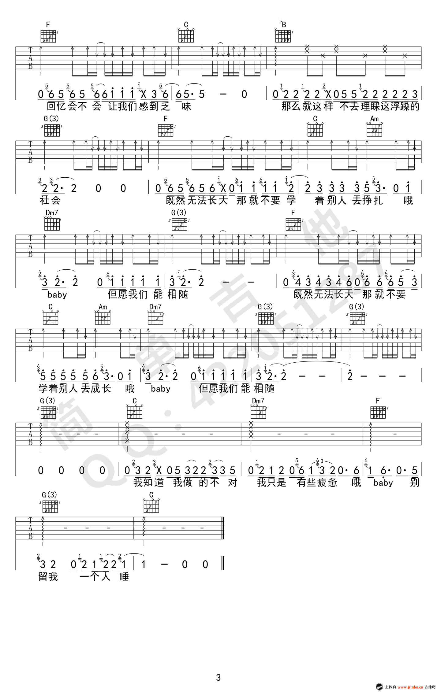 当前位置:琴谱网>吉他弹唱>无法长大