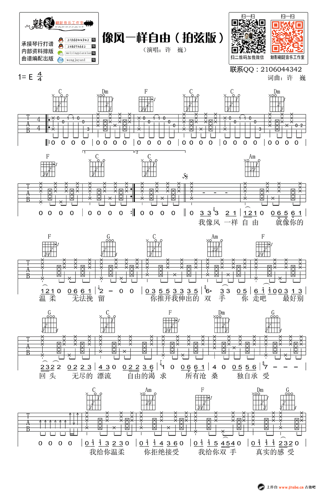 当前位置:琴谱网>吉他弹唱>像风一样自由