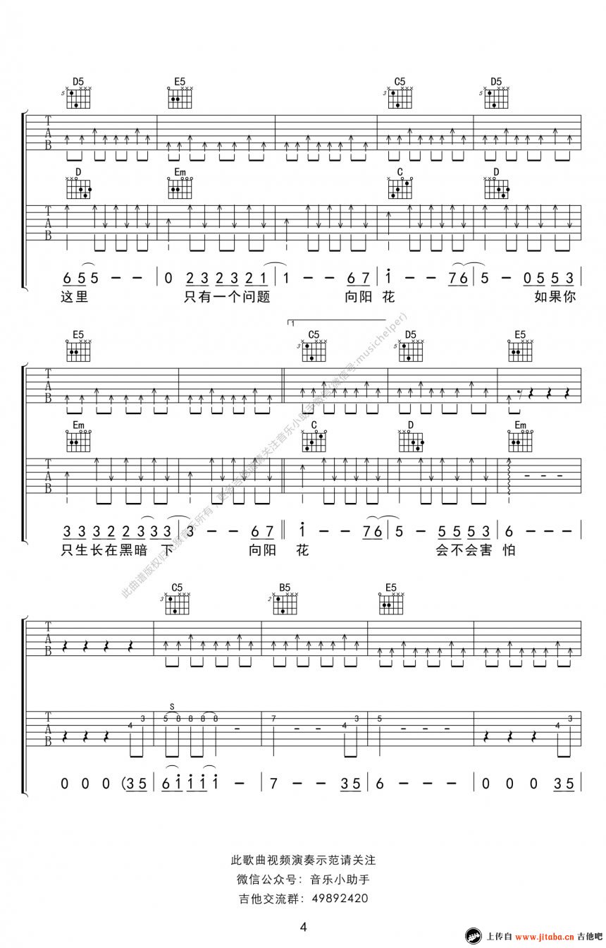 当前位置:琴谱网>吉他弹唱>向阳花