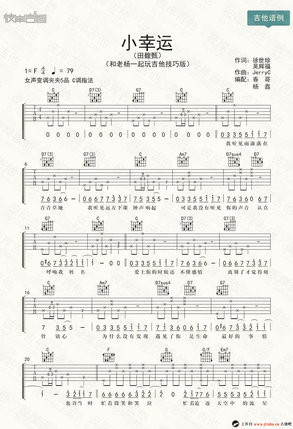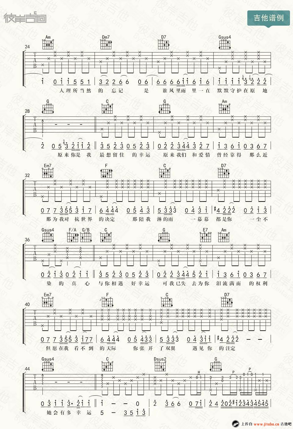 曲谱介绍: 小幸运吉他谱_弹唱谱高清版 小幸运吉他谱粤语版_六线谱