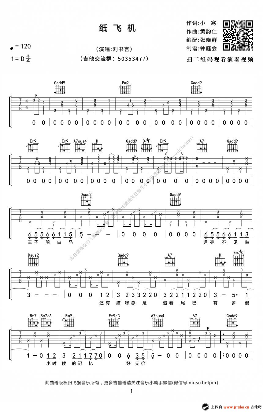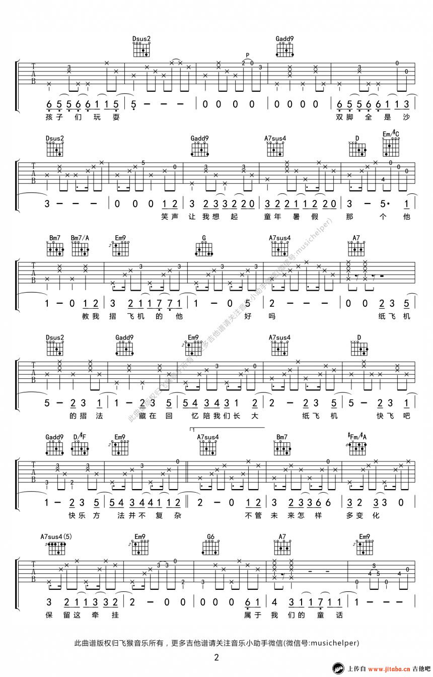 当前位置:琴谱网>吉他弹唱>纸飞机