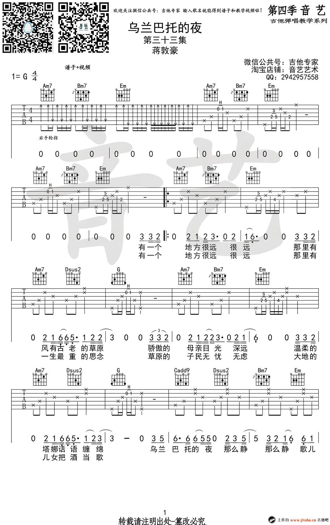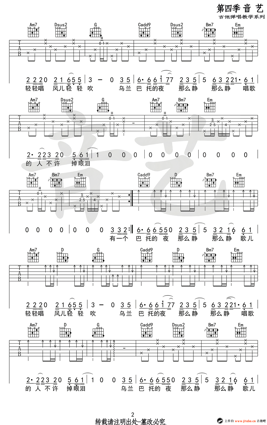 曲谱介绍: 乌兰巴托的夜吉他谱_弹唱教学视频 乌兰巴托的夜吉他谱_C调弹唱谱