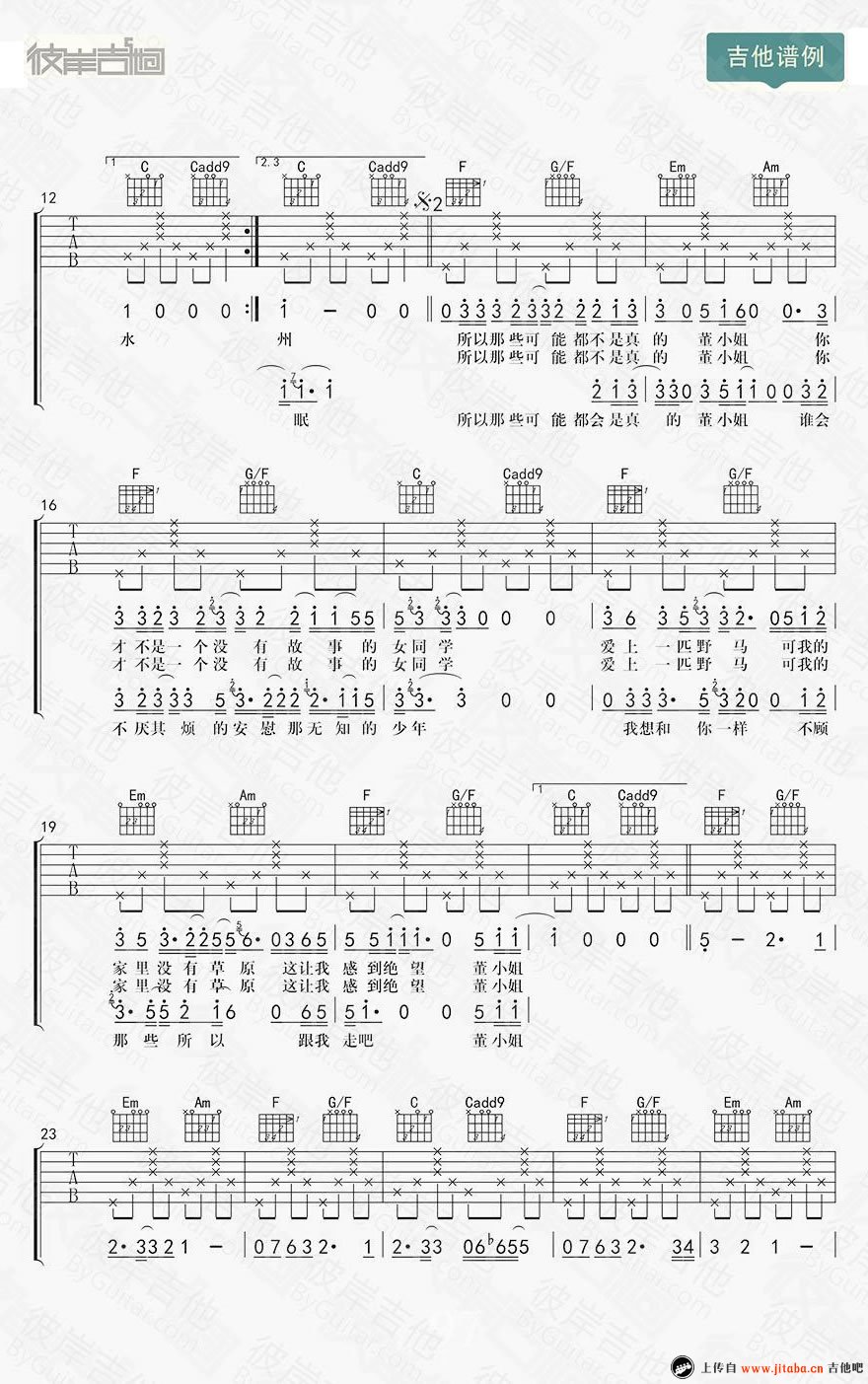 董小姐吉他谱 - 带前奏间奏尾奏 - C调吉他弹唱谱