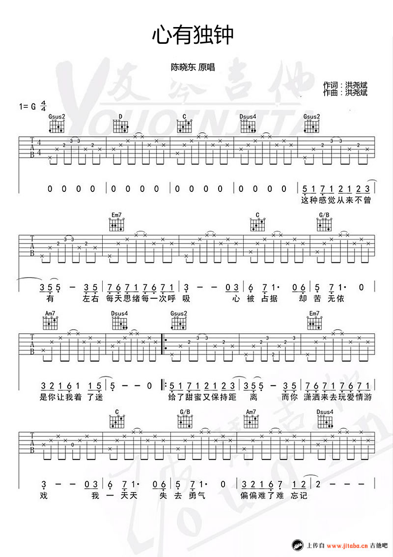 当前位置:琴谱网>吉他弹唱>心有独钟