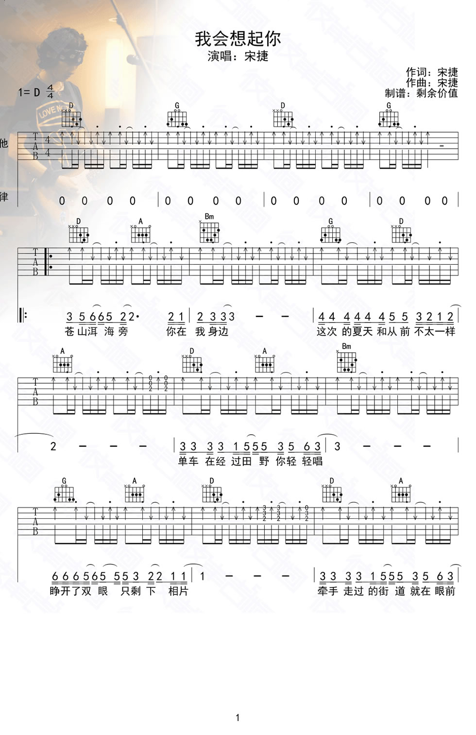我会想起你吉他谱 - 宋捷 - 吉他弹唱谱