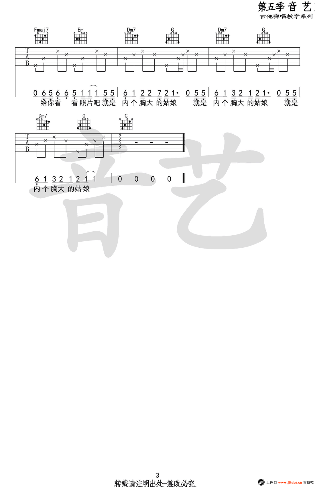 当前位置:琴谱网>吉他弹唱>胸大的姑娘