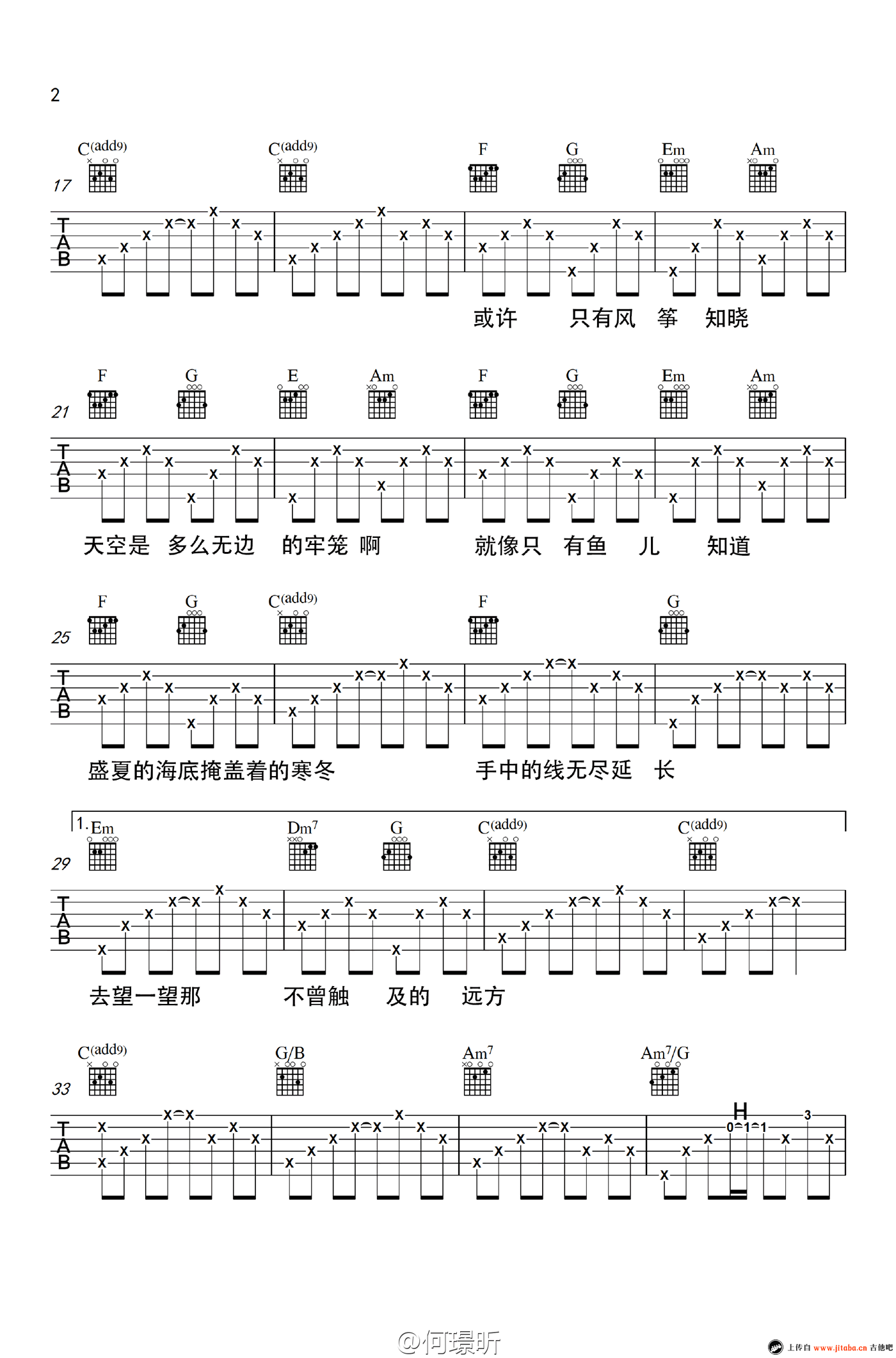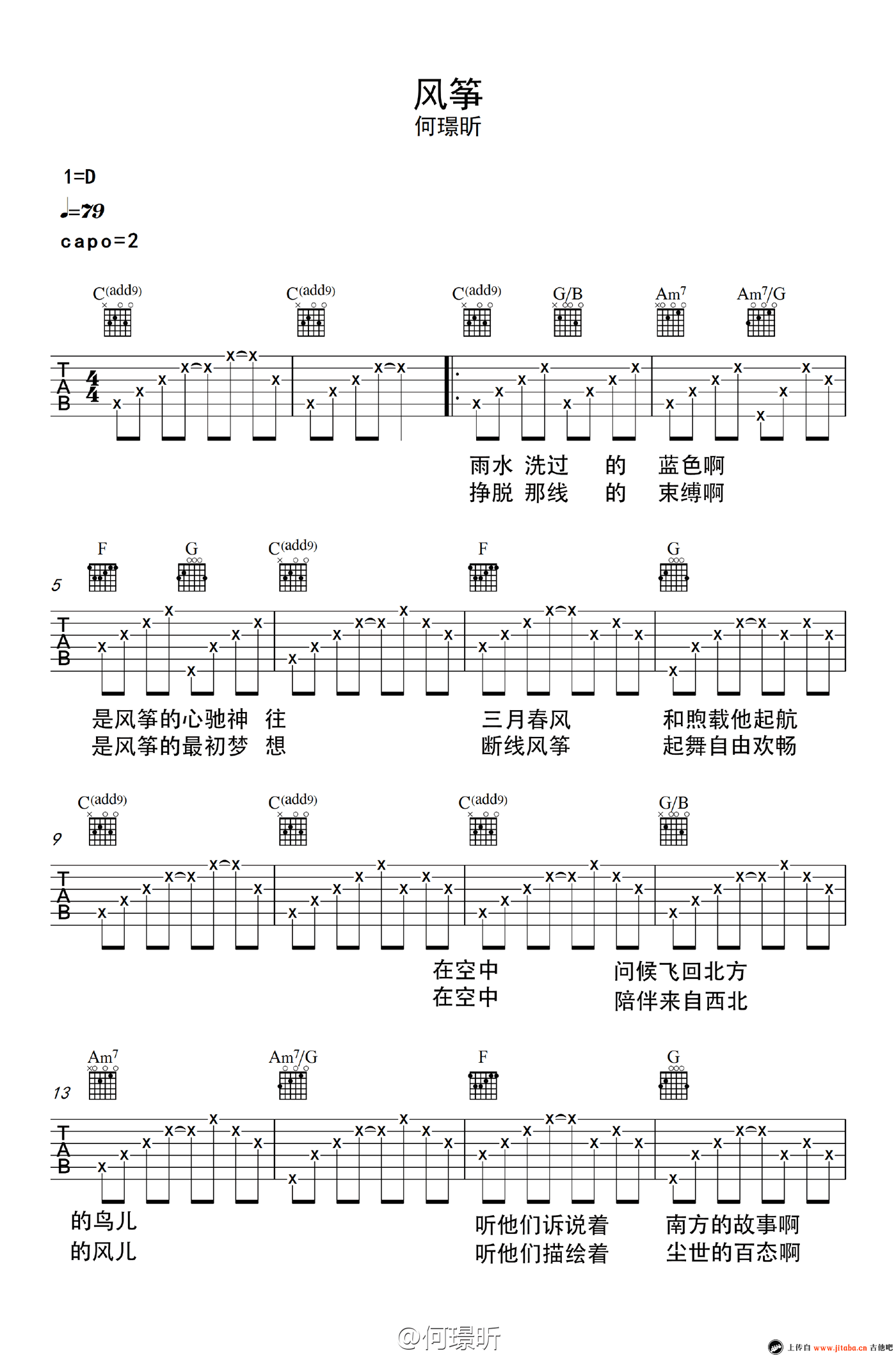 风筝吉他谱 - 何璟昕 - 吉他弹唱谱