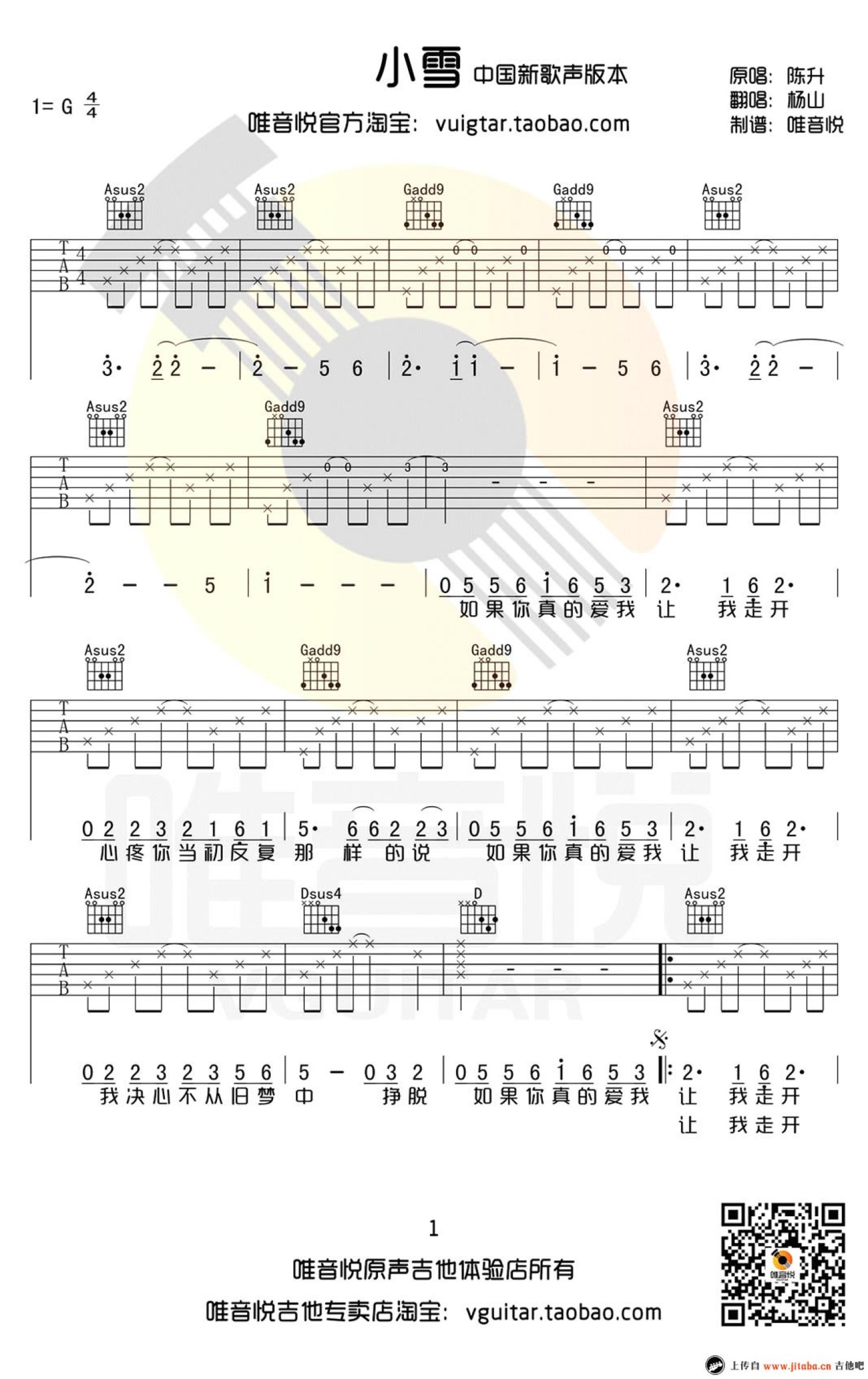 小雪吉他谱 - 杨山 - G调吉他弹唱谱