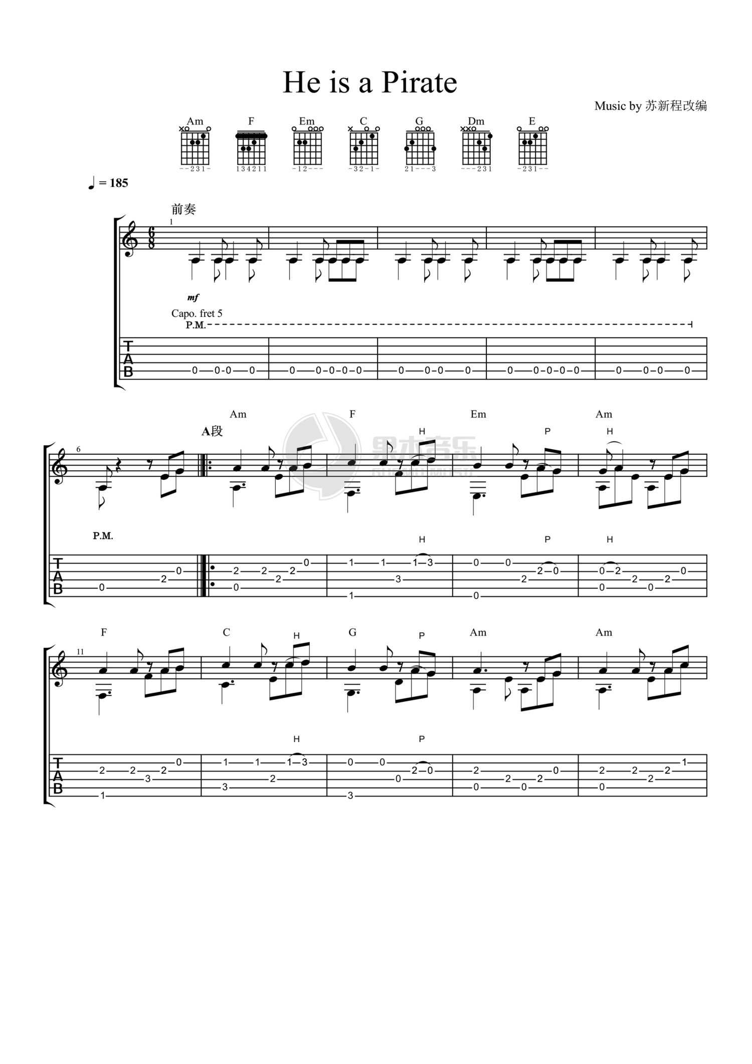 当前位置:琴谱网>吉他独奏>He's A Pirate