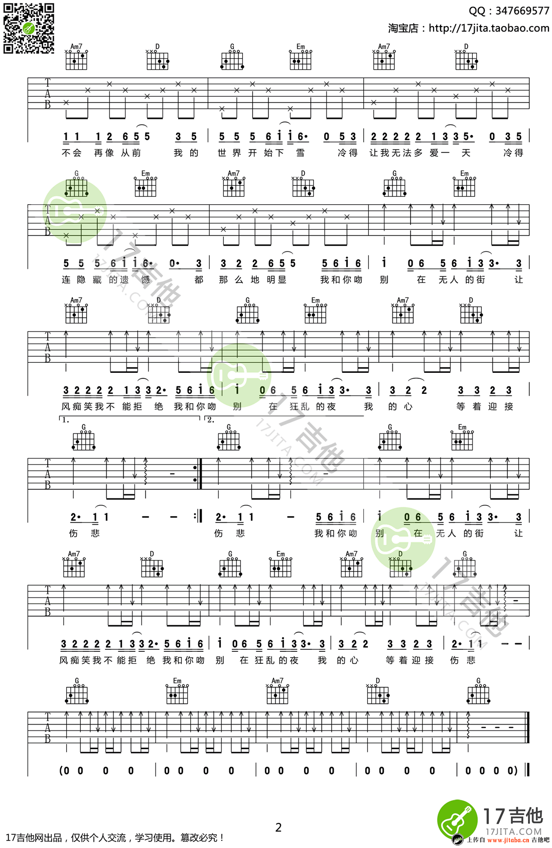 当前位置:琴谱网>吉他弹唱>吻别